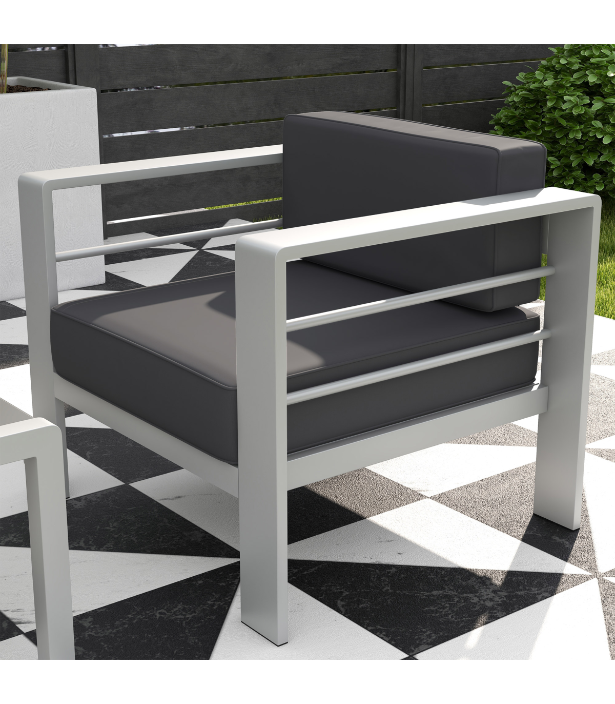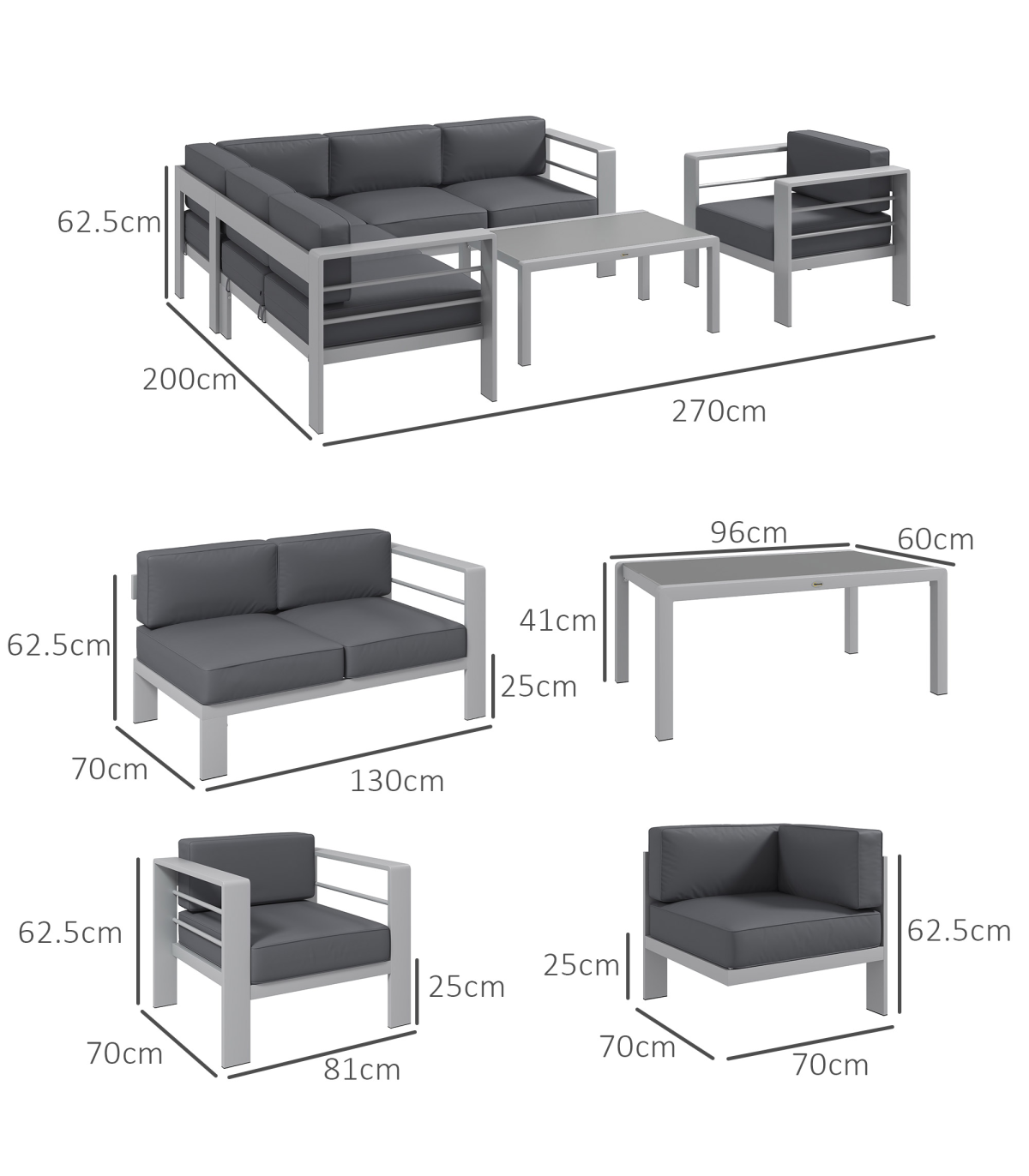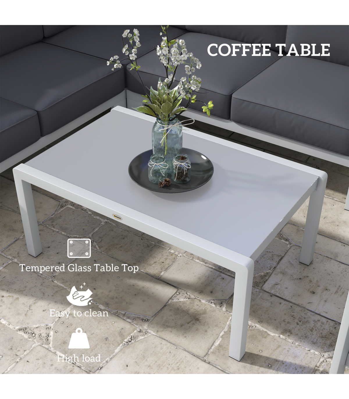 Simple and sleek, finished with total comfort - this Outsunny aluminium garden set ticks all the right boxes. Metal frames mean strength and suitability for outdoor use, with padded cushions on the seats and back so you can sit and relax in comfort. Patio furniture set comes with five pieces: two two-seater sofas, a corner chair, an armchair and rectangular table: set up to a shape which suits you. Complete with a glass top on the table, for a sleek look.