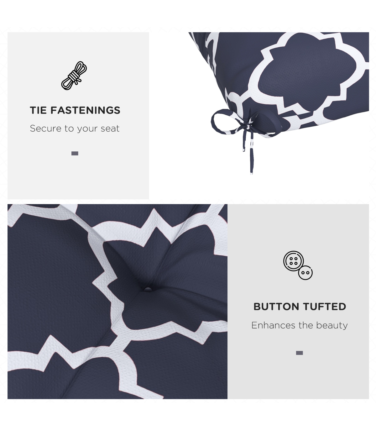 Outsunny Set of 4 Outdoor Seat Cushion with Ties, for Garden Furniture, Blue