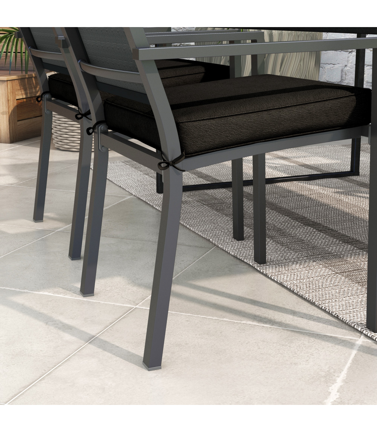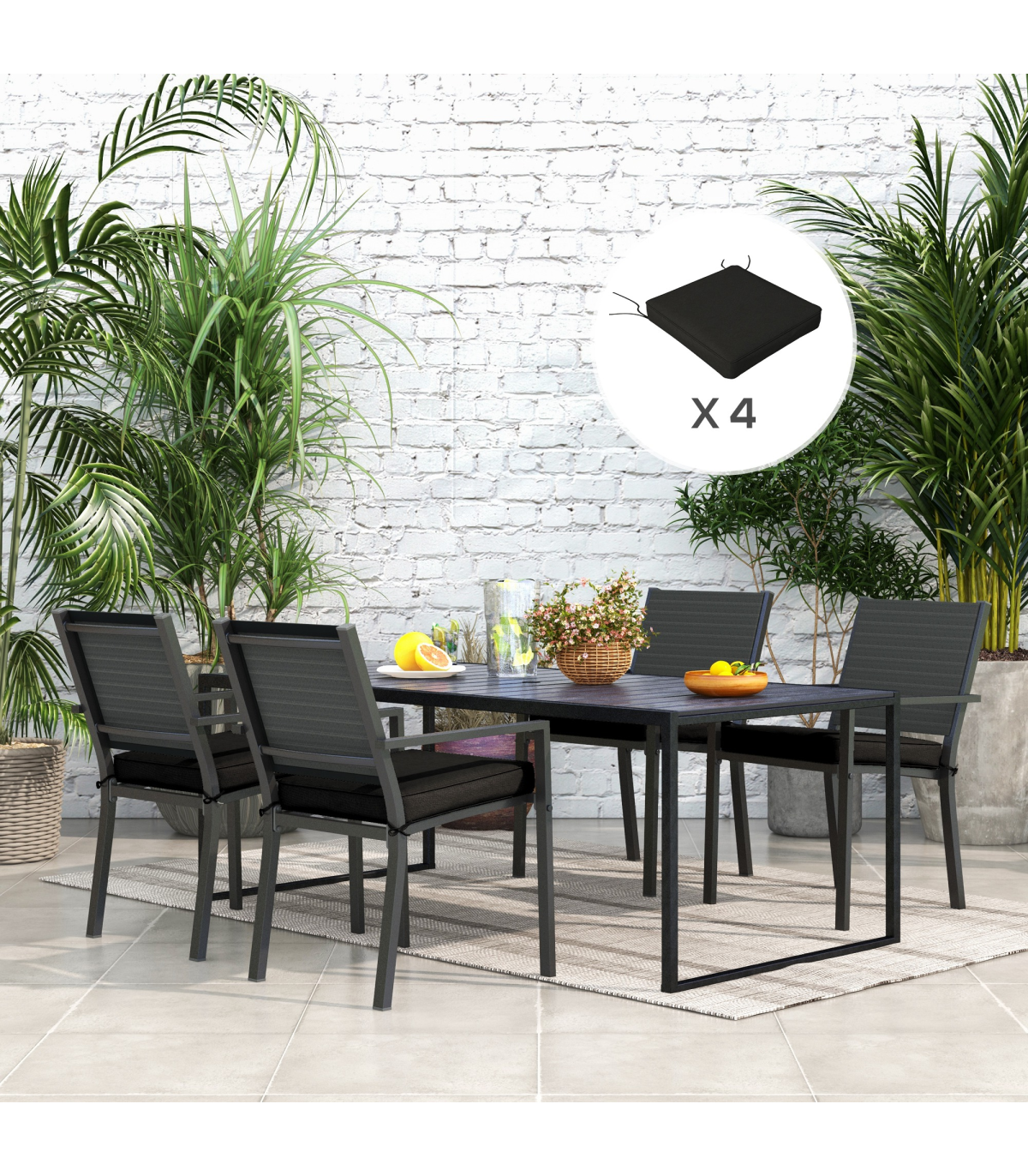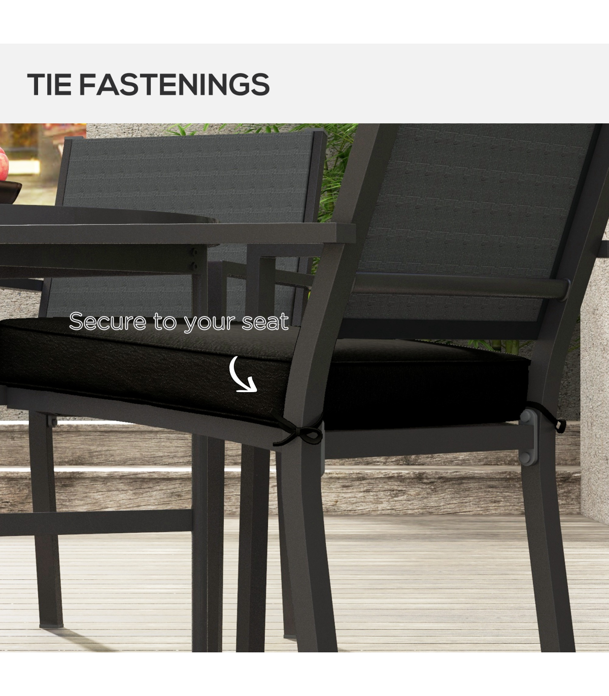 Outsunny Set of 4 Outdoor Seat Cushion with Ties, for Patio Furniture, Black