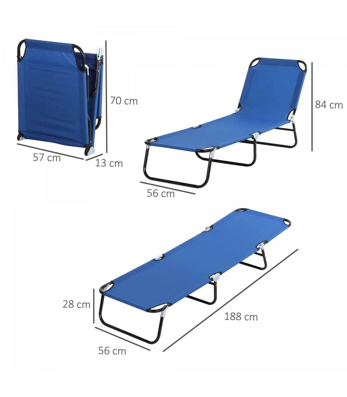 Our new foldable chaise lounge chair is built strong, built comfortable, and built to last! This sun lounge chair from Outsunny is great for all types of outdoor use (and indoor use, too!). This patio chair is designed to be extra-long, so there's no more worrying about your feet hanging off the edge. We utilize reinforced high-quality steel and they are constructed using durable Oxford cloth material, so you can depend on this patio chair lasting you and your family a long time! Being easy to set up and take down, these patio chair loungers make camping or relaxing by the pool a breeze and are great for any outdoor or indoor use.