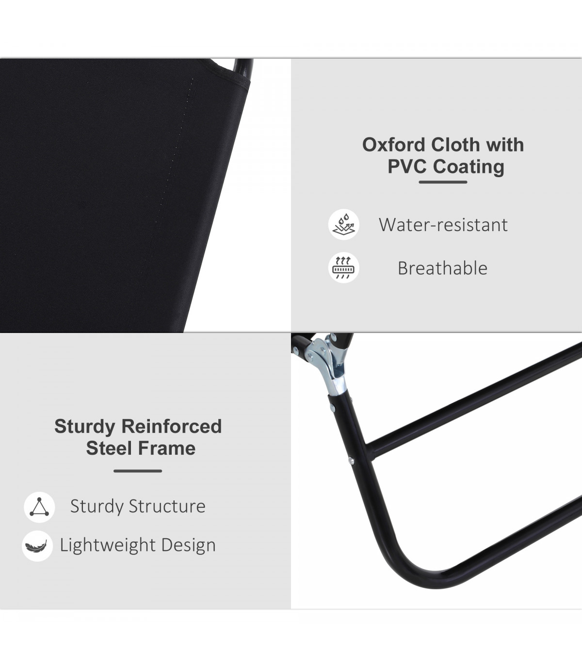 Our new foldable chaise lounge chair is built strong, built comfortable, and built to last! This sun lounge chair from Outsunny is great for all types of outdoor use (and indoor use, too!). This patio chair is designed to be extra-long, so there's no more worrying about your feet hanging off the edge. We utilize reinforced high-quality steel and they are constructed using durable Oxford cloth material, so you can depend on this patio chair lasting you and your family a long time! Being easy to set up and take down, these patio chair loungers make camping or relaxing by the pool a breeze and are great for any outdoor or indoor use.