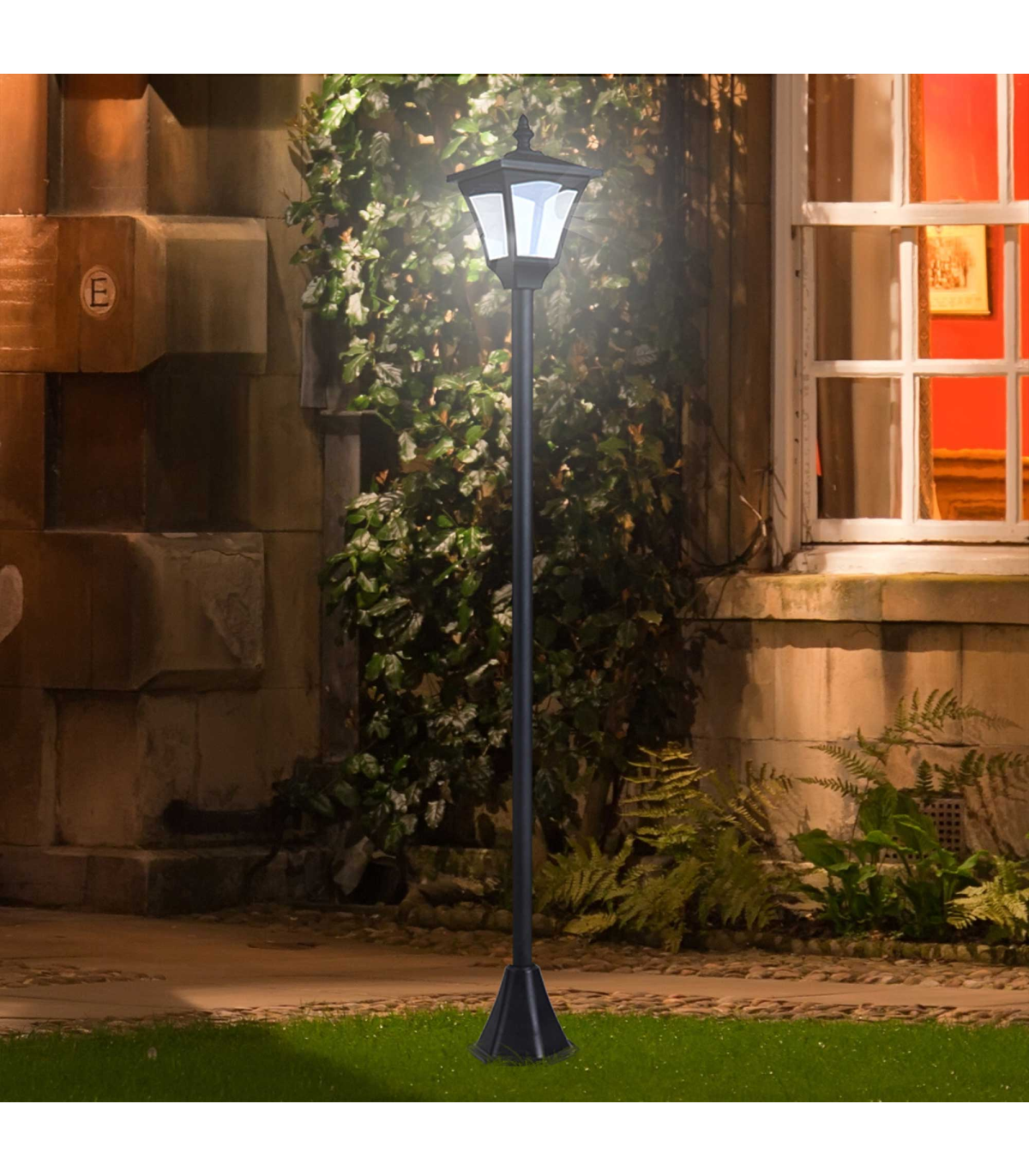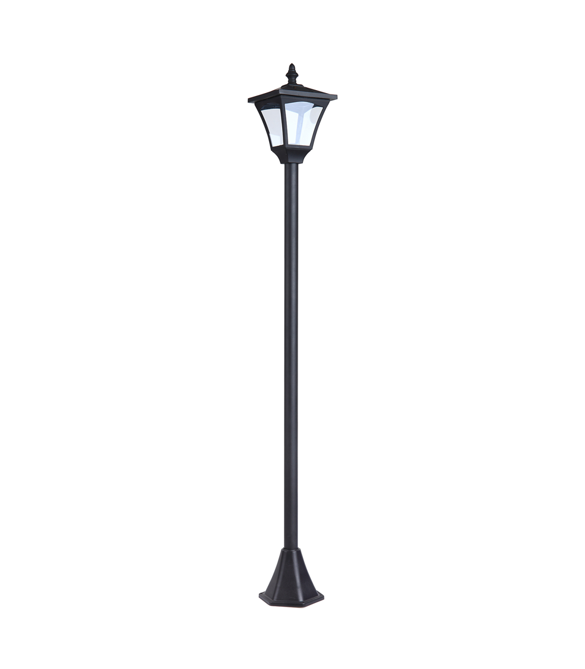 Removable LED light is controlled by the power switch with a insulation sheet Automatic light sensor activates at dusk when UV luminance is lower than 3LUX Equipped with 4 pieces of a-Si solar panels on the top Lights up to 5-6 hours if fully solar energy charged Removable plastic base and additional stakes for reliable stability IP44 rated materials and chic style make it ideal for gardens, pathways,patios, decks and more