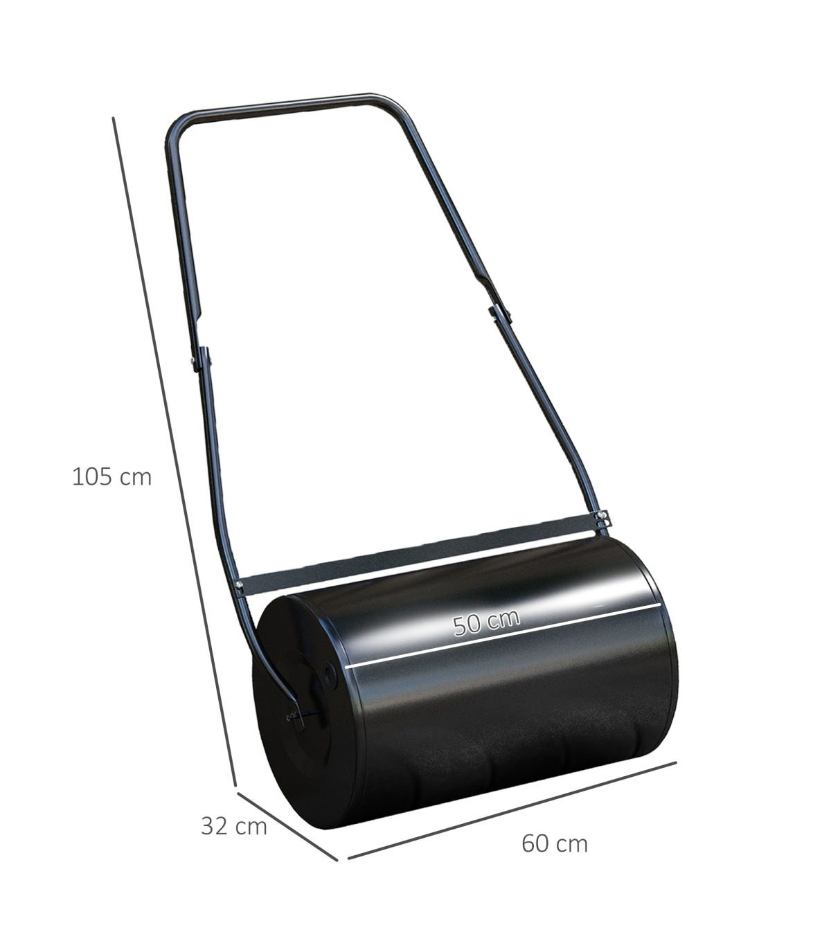 - "Garden Lawn Roller 38L Steel Push Grass Mower Water Sand Filled Durhand" - Description: - ROLLS GARDEN EFFECTIVELY: Great for freshly sowed lawns and uneven patches caused by frost and moles. - QUALITY STEEL QUALITY CONSTRUCTION: Extremely sturdy and durable, it has been built to last for years to come. Treated to prevent rust and rotting. - HOLDS UP TO 38 LITRES: Allows you to have control on how heavy you want it to roll. - U-SHAPED HANDLE: Allows you to operate comfortably. - PUSH AND PULL: Can go back and forth over tougher spots with ease. - DIMENSIONS: 60L x 105H x 32Wcm. - EASY TO MOVE AND STORE. - NOTE: - In order to increase the service life, please pour the water out when not in use. - It is not recommended to use it on the lawn with too many small stones. - It's normal if there's slight water seepage.