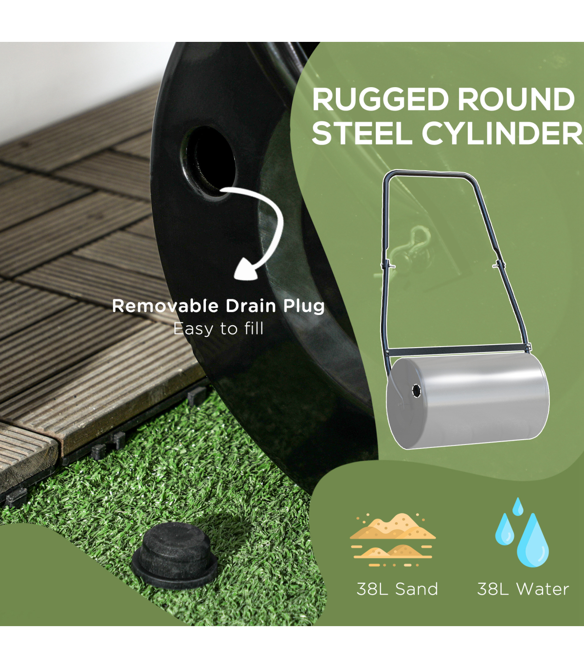 Garden Lawn Roller 38L Steel Push Grass Mower Water Sand Filled Durhand