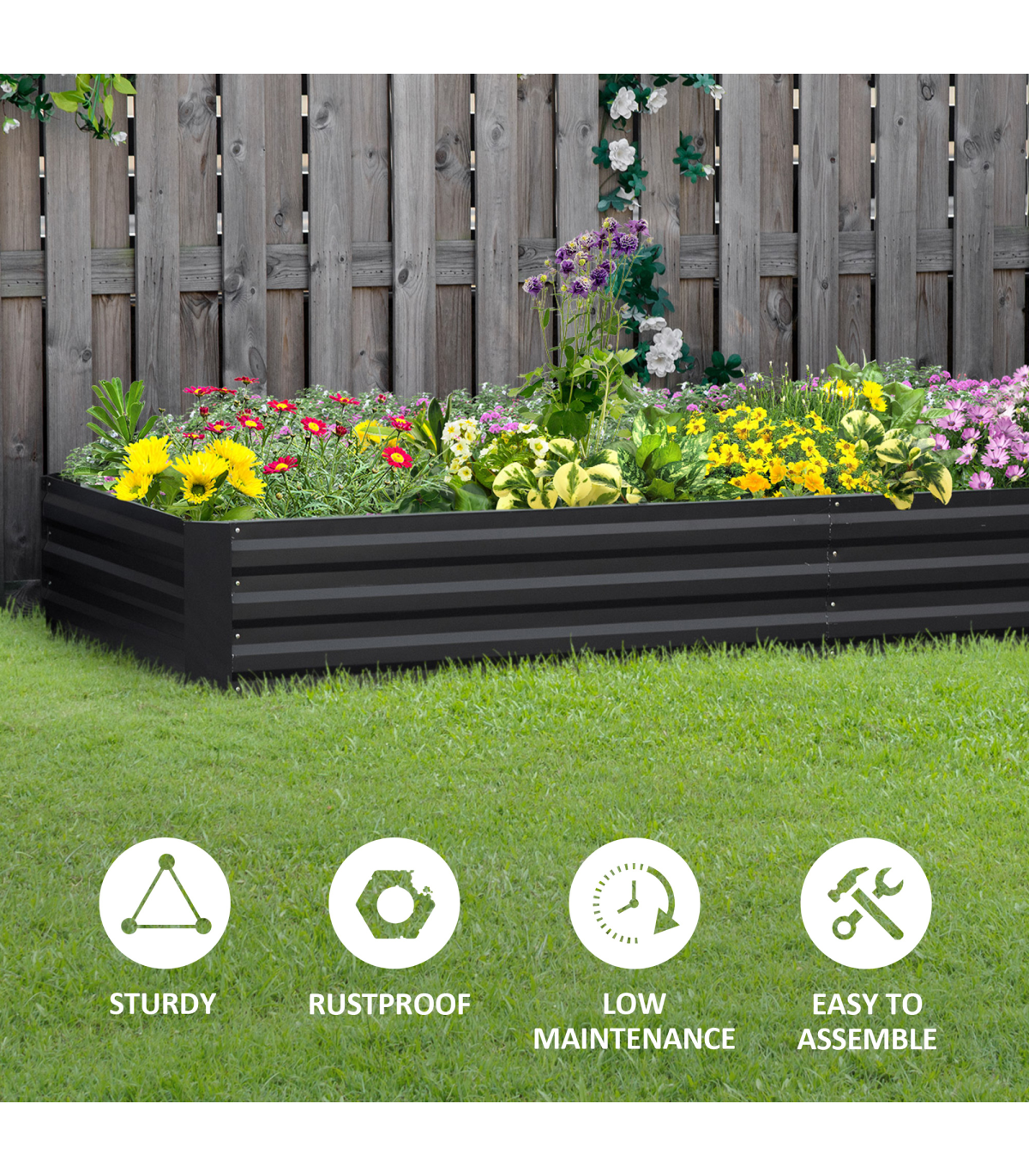 Whether small or large, this Outsunny raised garden bed is the place to grow plants. With its steel structure and unpolished design, this is a piece that effortlessly welcomes itself into any outdoor space. Whether fixed to the 120 x 80cm or 241L x 90.5cm size, it will fence off plenty of flowers, vegetables and other plants. Made from steel, it is tough - also rust-resistant so it's suitable for outdoor use. An open bottom means plants have direct contact with the soil for excellent growth.