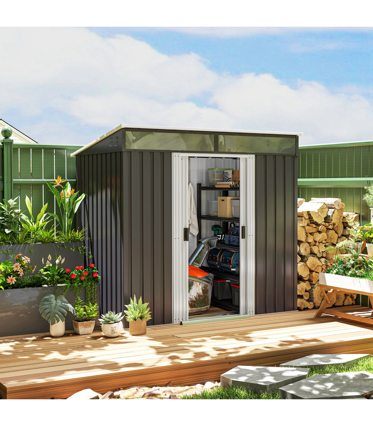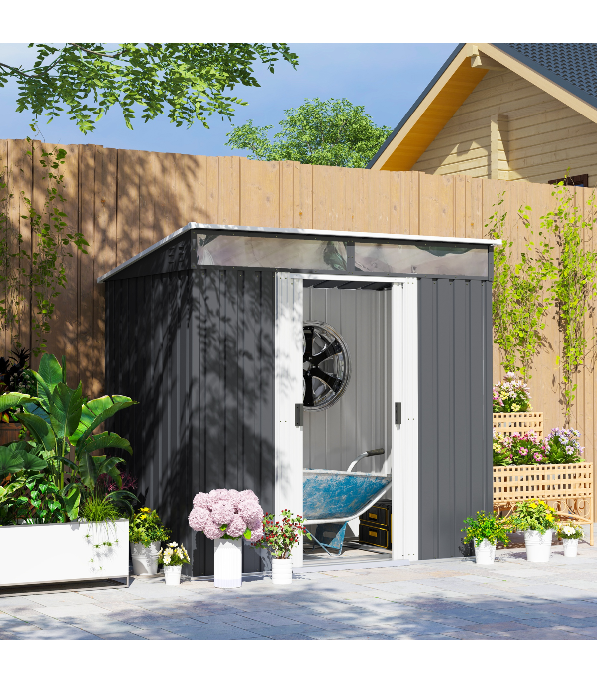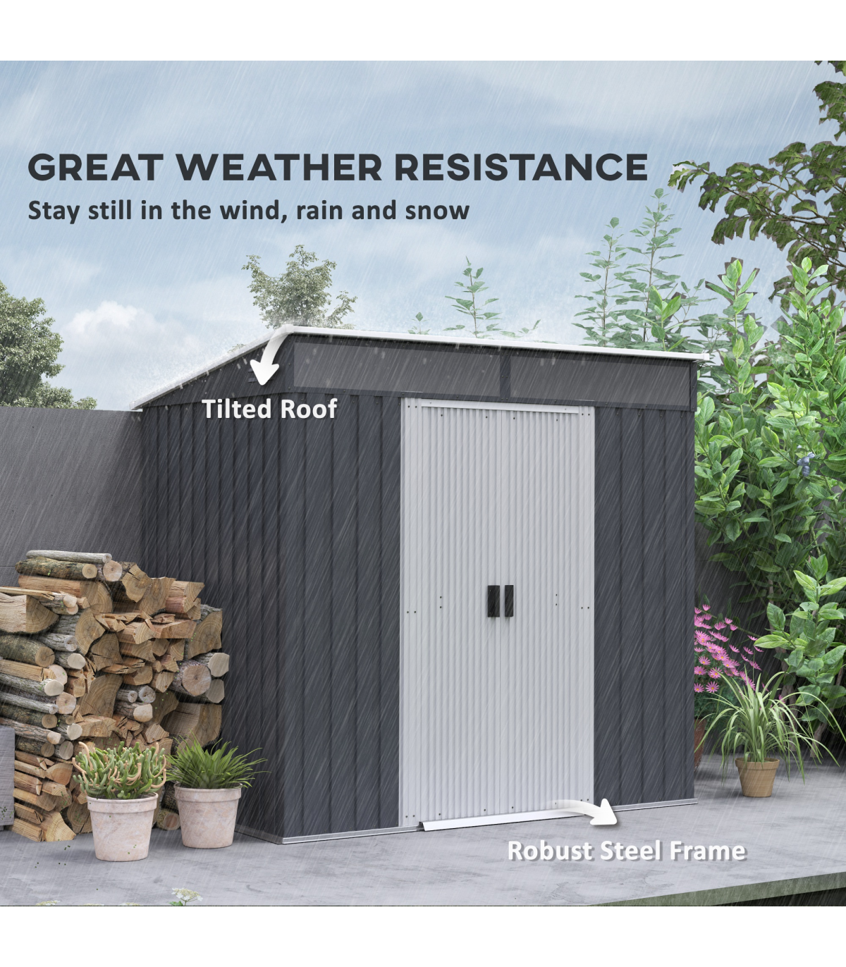 - "Outsunny 6.5x4FT Garden Shed with Foundation Lockable Metal Tool Shed Grey"