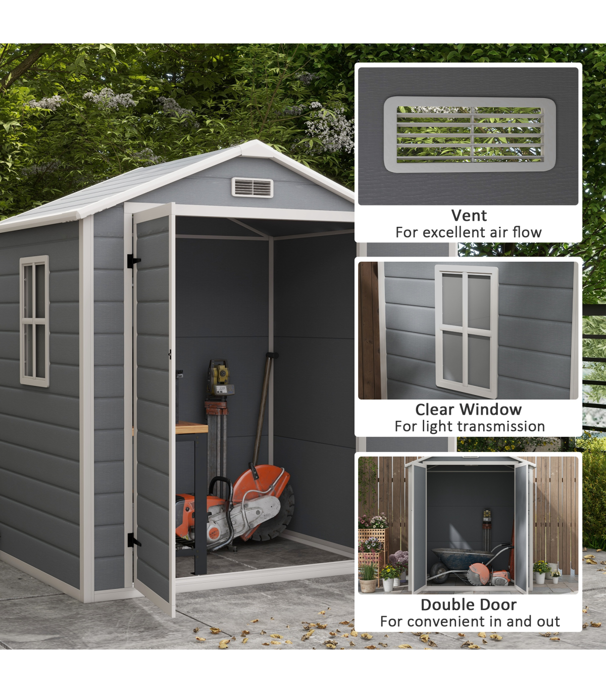 Outsunny Garden Shed 6'x4.5' Plastic Tool Storage House w/ Lockable Double Doors