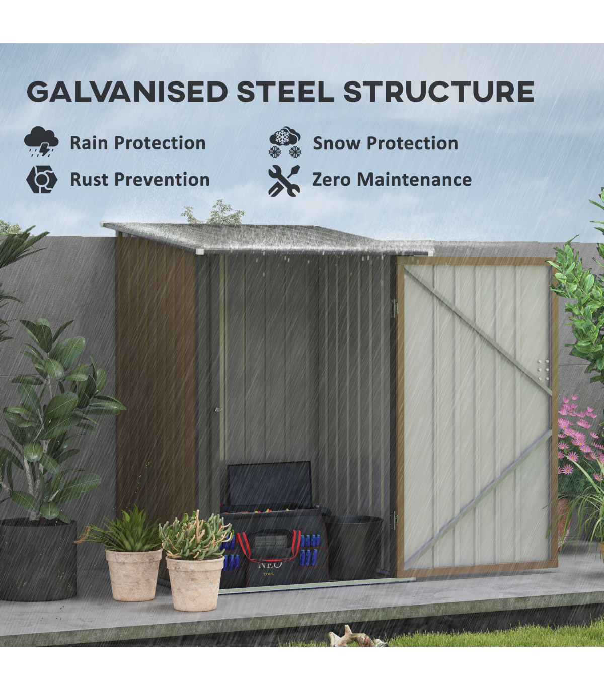 Add your outdoor storage space with the Outsunny metal lean to shed. Made from galvanised steel with a corrugated finish, the garden tool shed offers robust protection for your inside contents. It's completely open inside, so you can store plenty - or even add your own shelving for organisation. A single door for access, fitted with a latch to keep it shut in place.