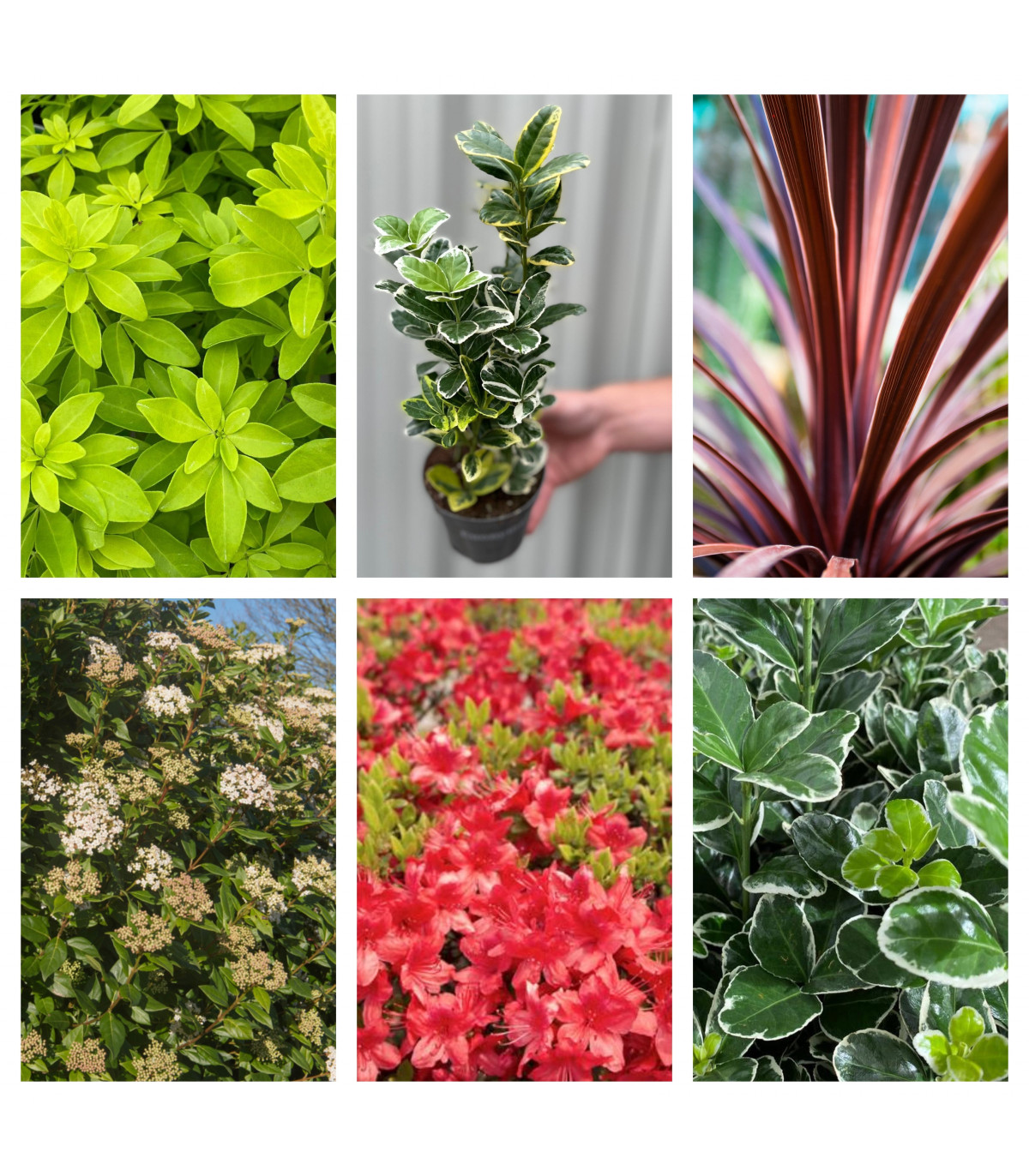 This brilliant deal includes 6 established Evergreen Shrubs, ideal for adding all year round colour to the garden. The shrubs can be planted in the garden or can even be planted in containers.