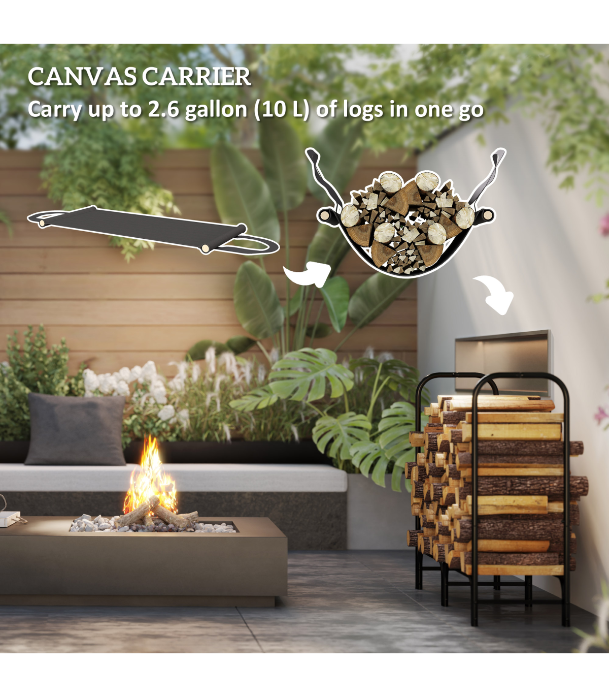 ● Includes canvas carrier, transports 10L of logs effortlessly