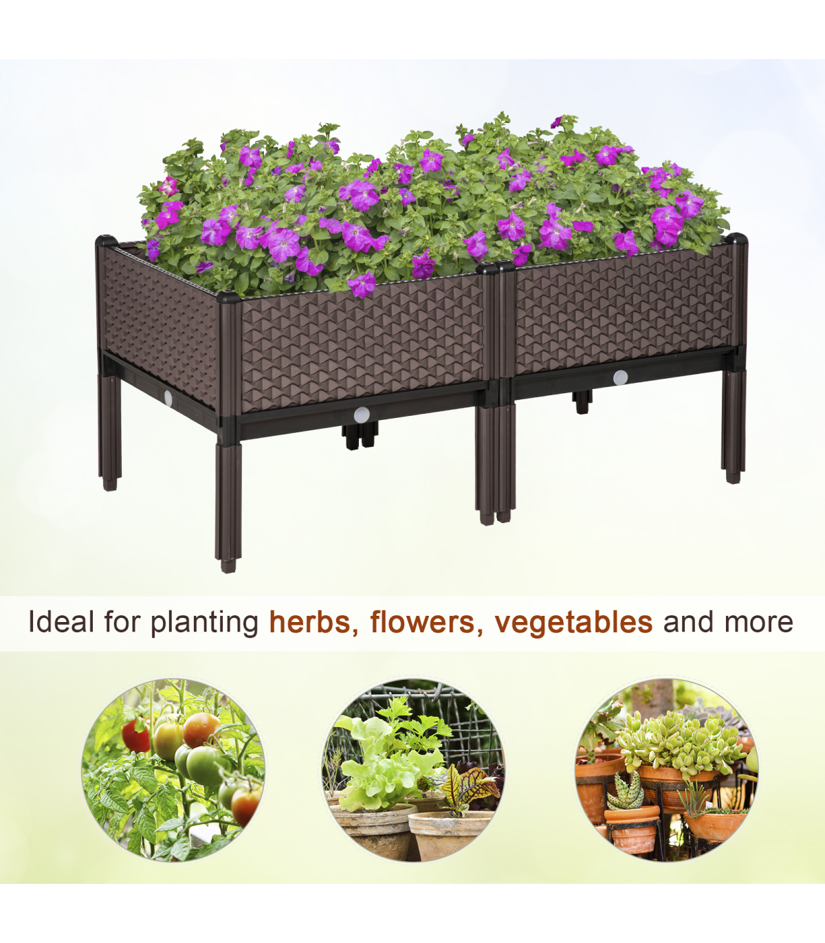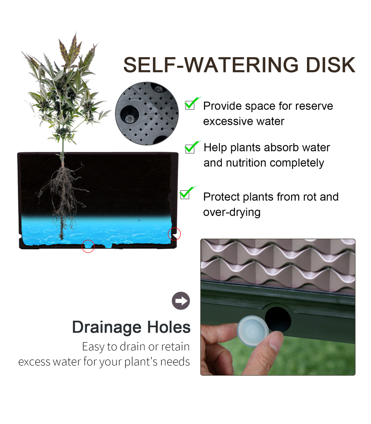 Our 2-piece planter box is a better way to grow plants at home. Raised garden beds are ideal for small patios, decks, balconies, condos, apartments, and more. Lightweight and durable PP material lets this garden box serve you for many seasons to come. The elevated plant bed enables you to garden in comfort, alleviating the need to bend or stoop. With this smart planter bed, you can start to grow tomatoes, vegetables, herbs, or your favorite flowers anywhere!