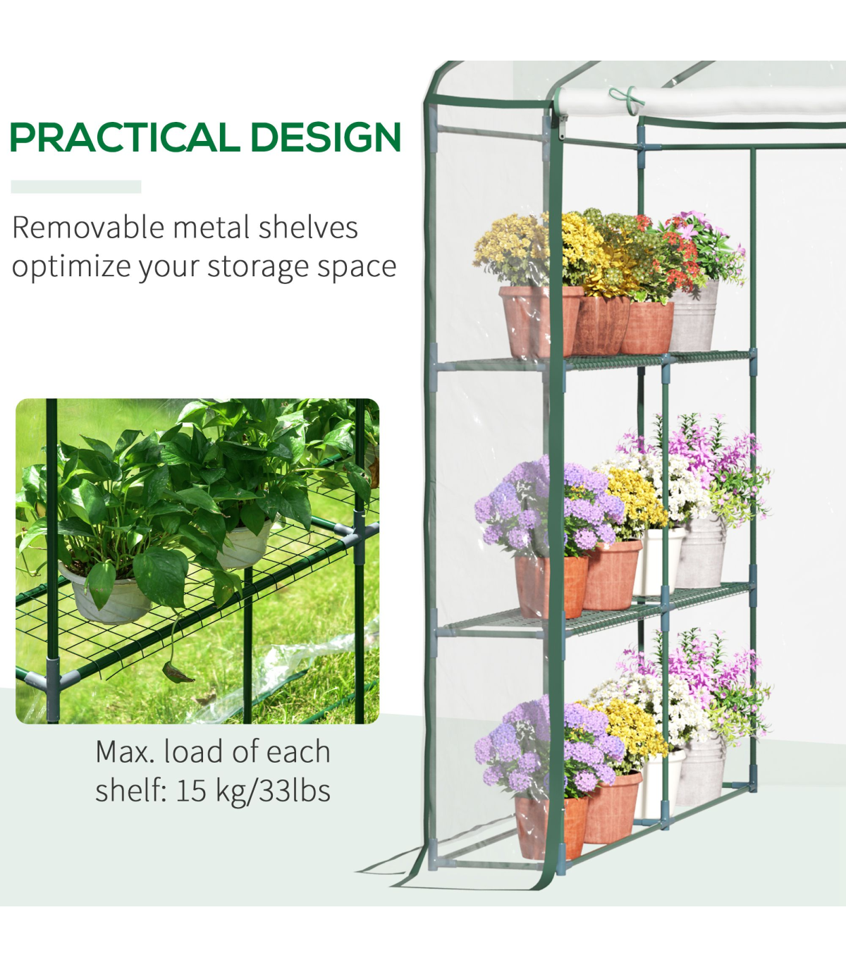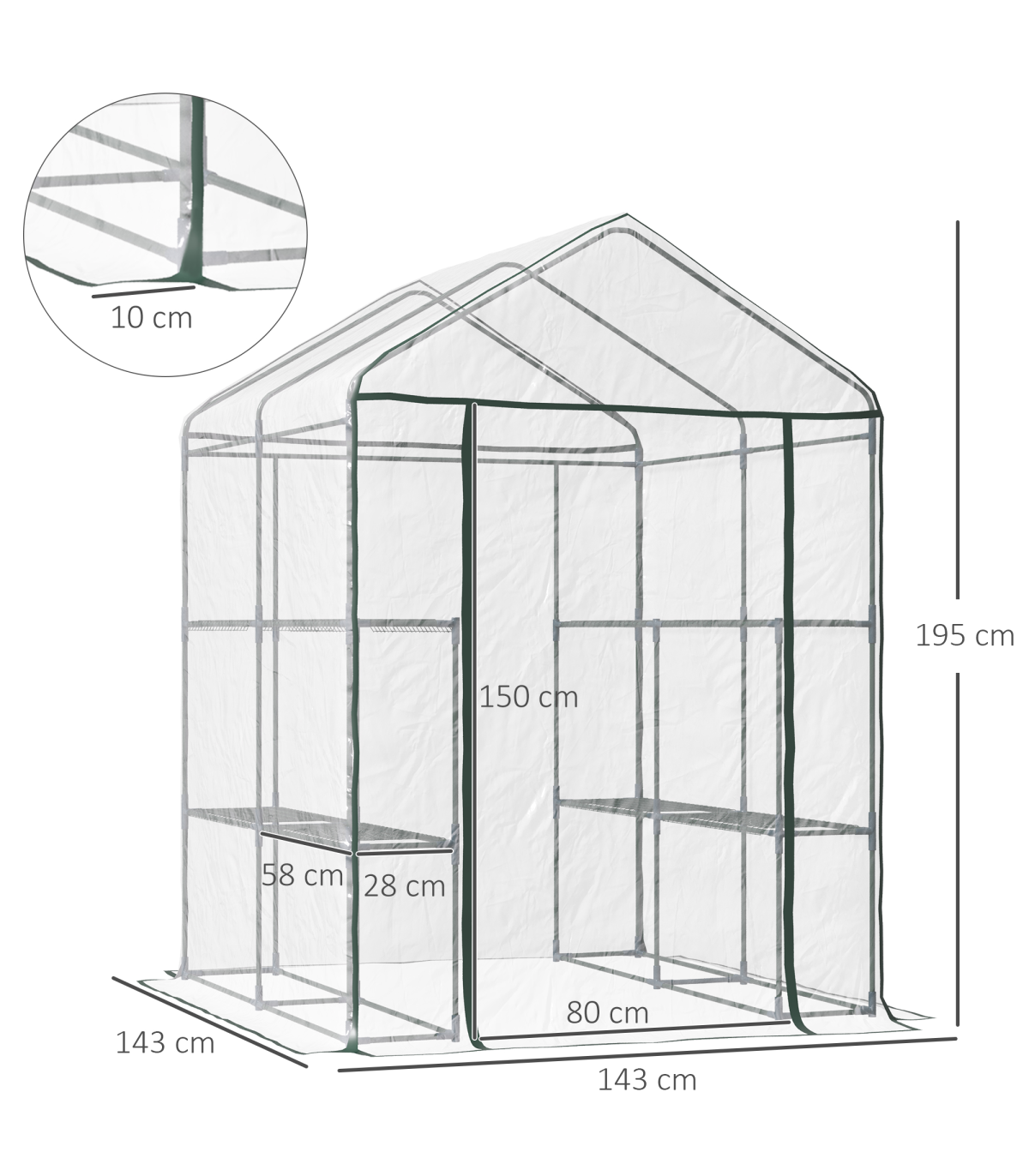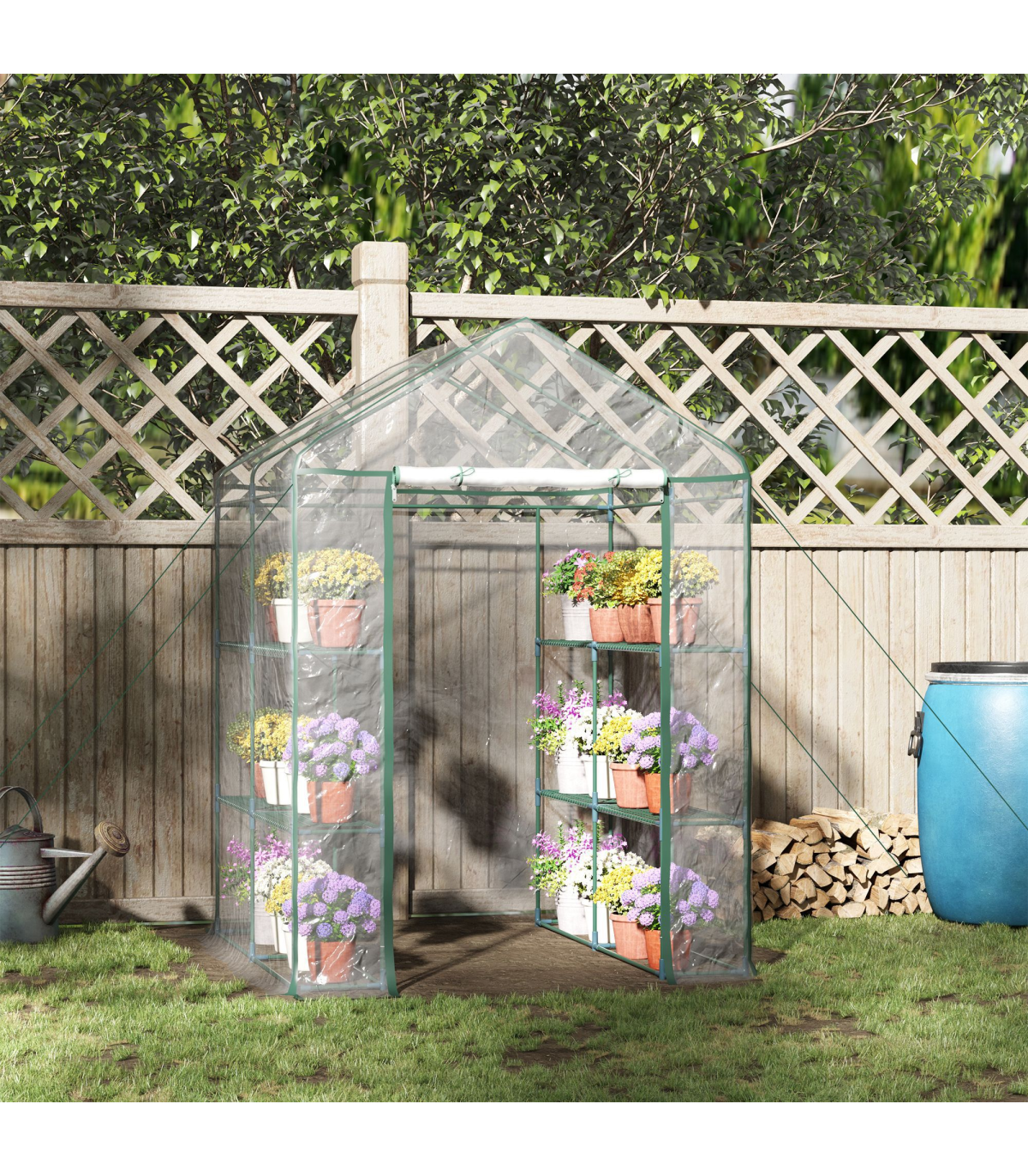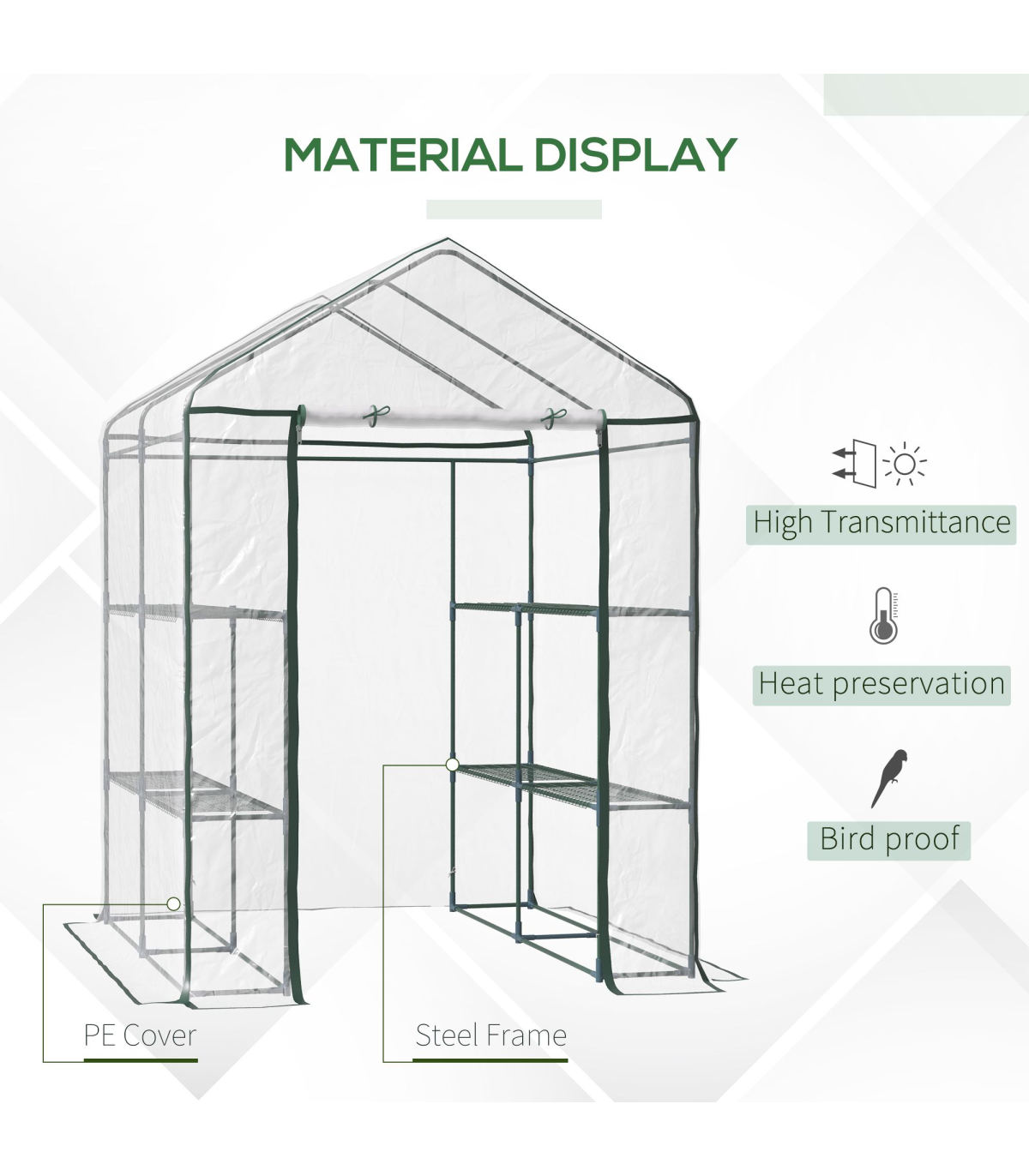 This large greenhouse is a perfect growth environment for flowers, plants and even vegetable. Made with a sturdy steel pipe frame and covered with a durable pvc film, this will maintain a consistent temperature for essential and healthy growing. It comes complete with a 8 grid metal rack for easy placing of pots, and the clear pvc film will give maximum light and not cause the greenhouse to overheat. A perfect solution for your home growing needs.
