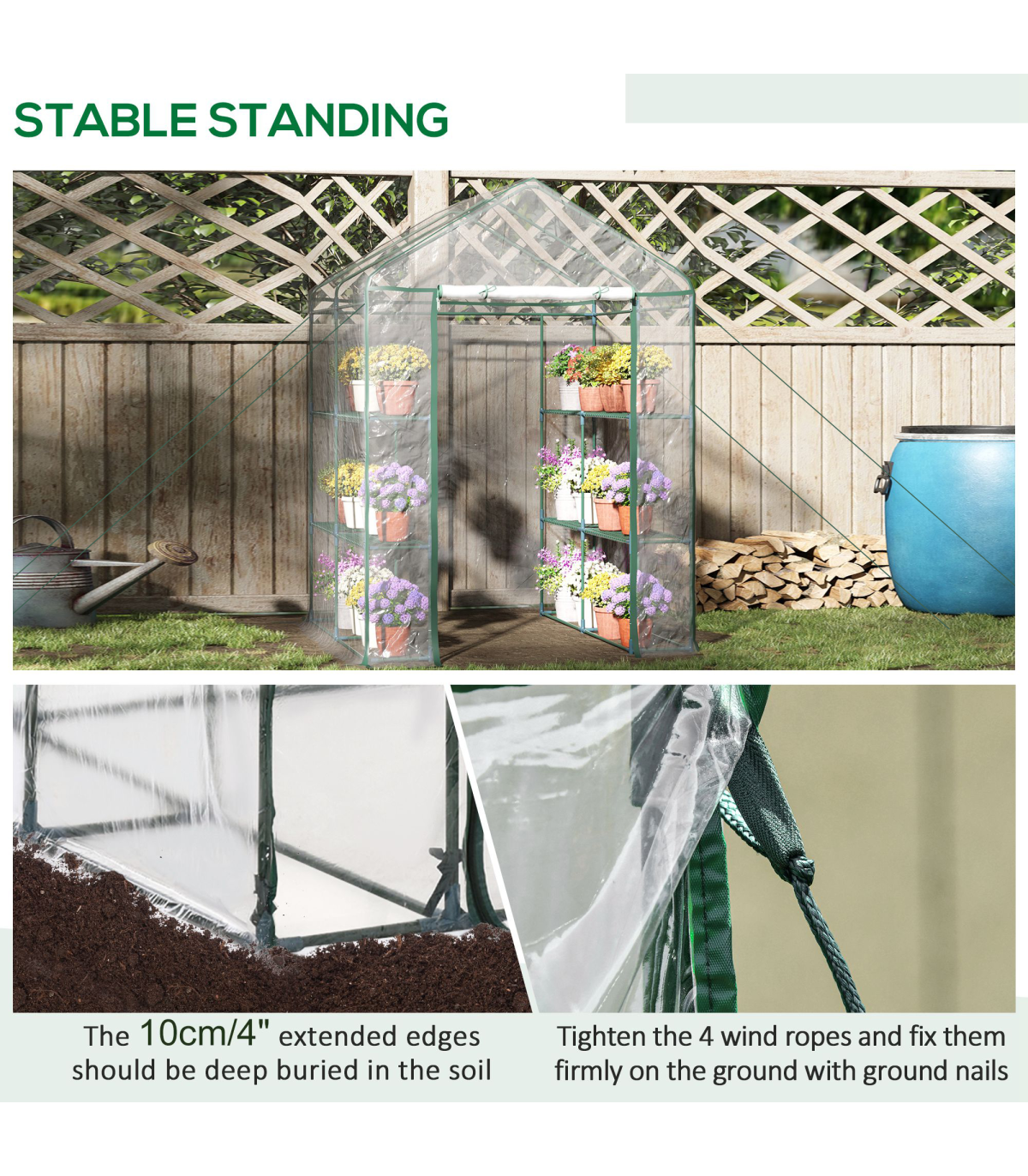 - 4 pull ropes and 4 ground nails added for stable fixation