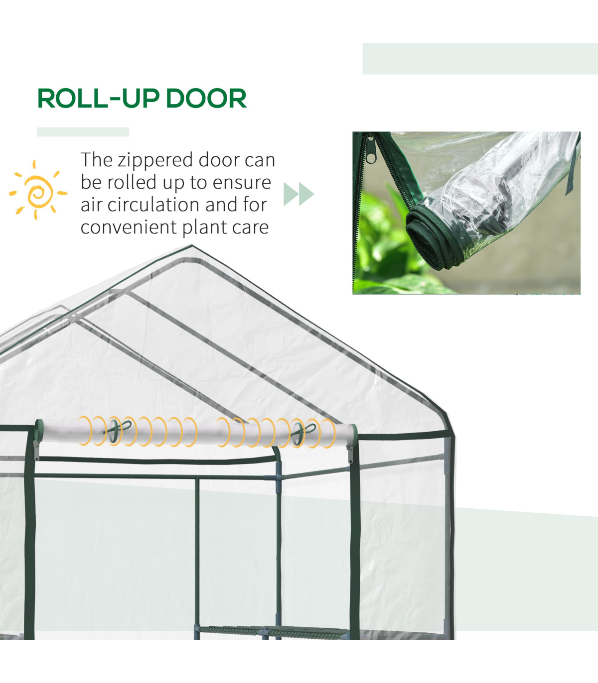 - Zippered door for smooth opening and close, door can also be rolled up for easy ventilation and access
