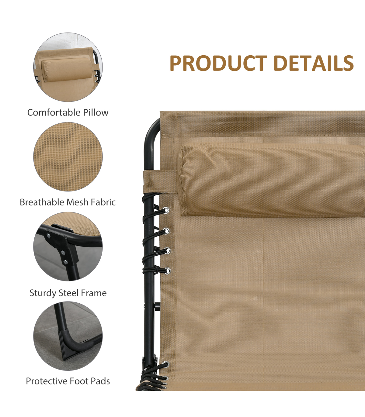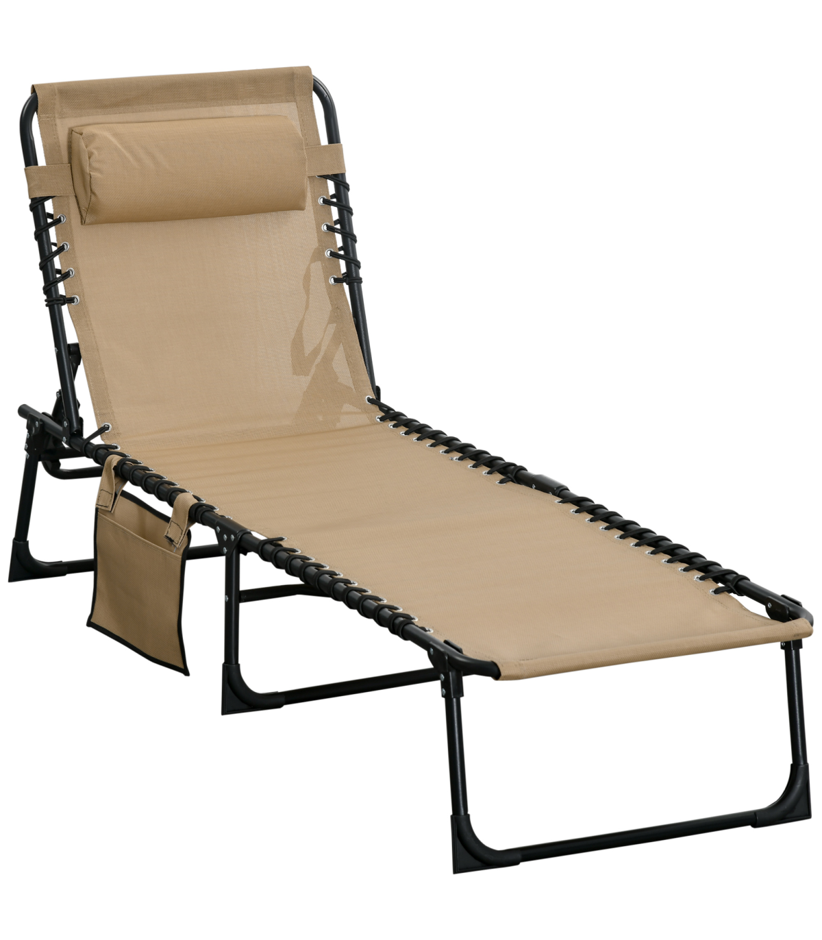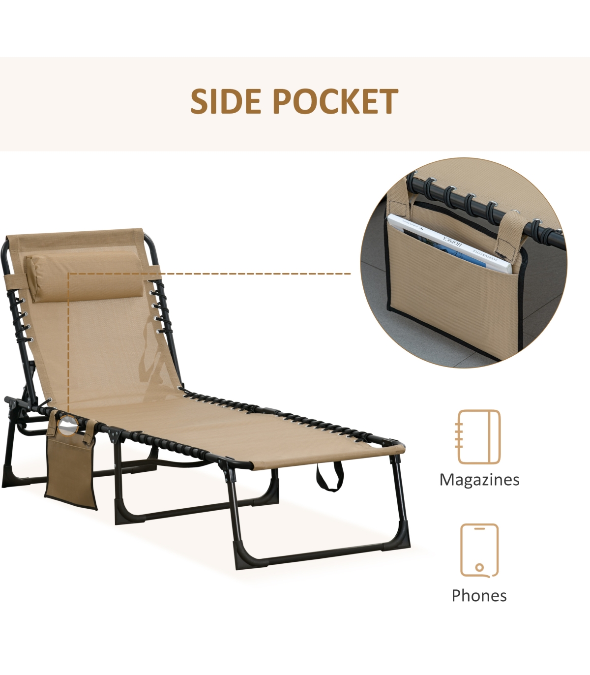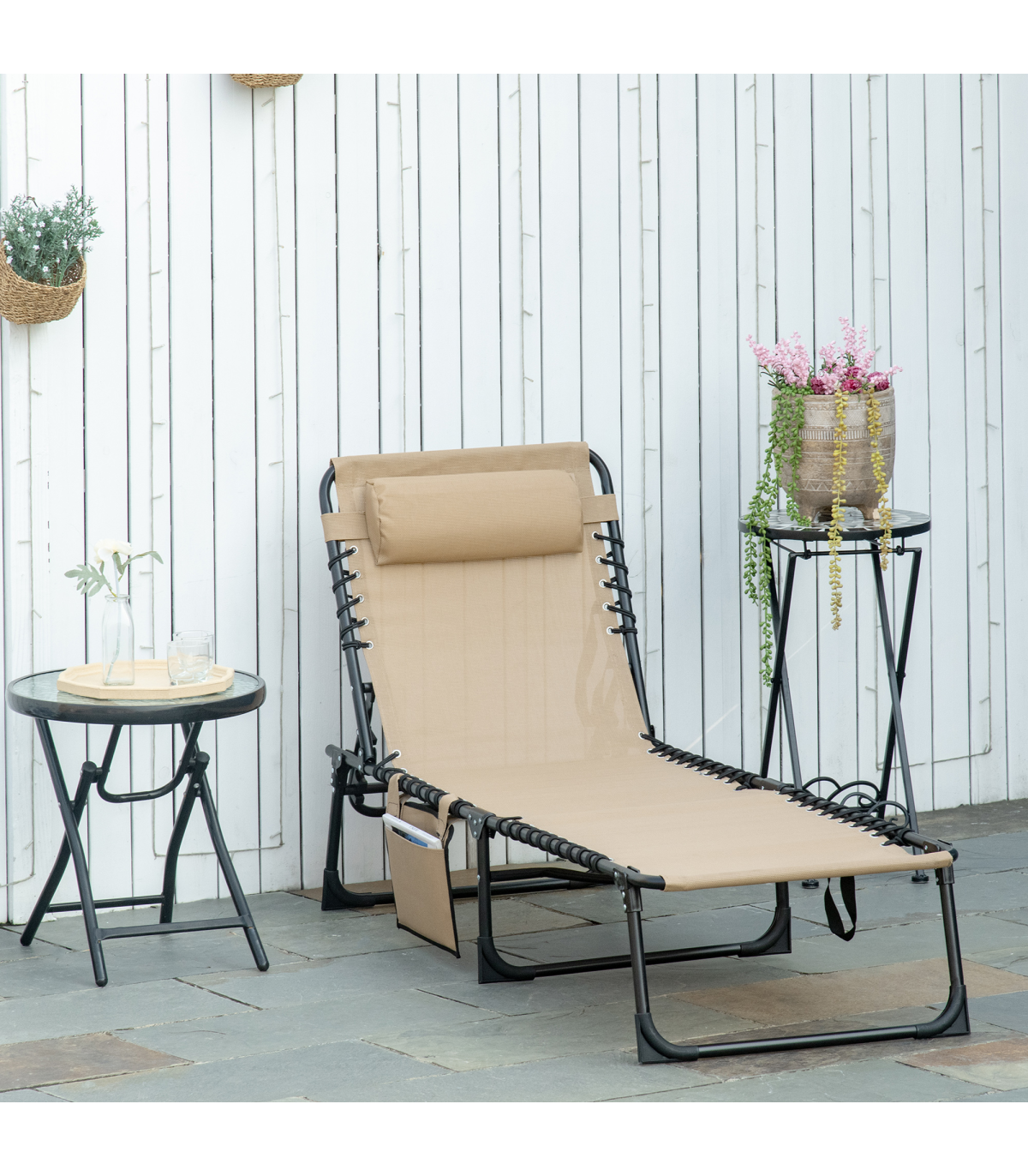Portable Sun Lounger, Adjustable Backrest PillowBeige