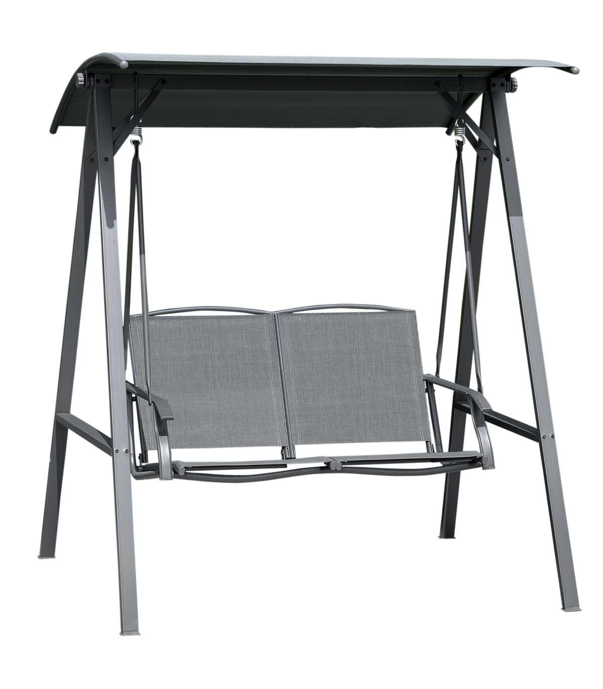 METAL FRAME: Strong structure, legs formed into 'A' shape for 2 seater swing's stability. Foot pads for light floor protection.