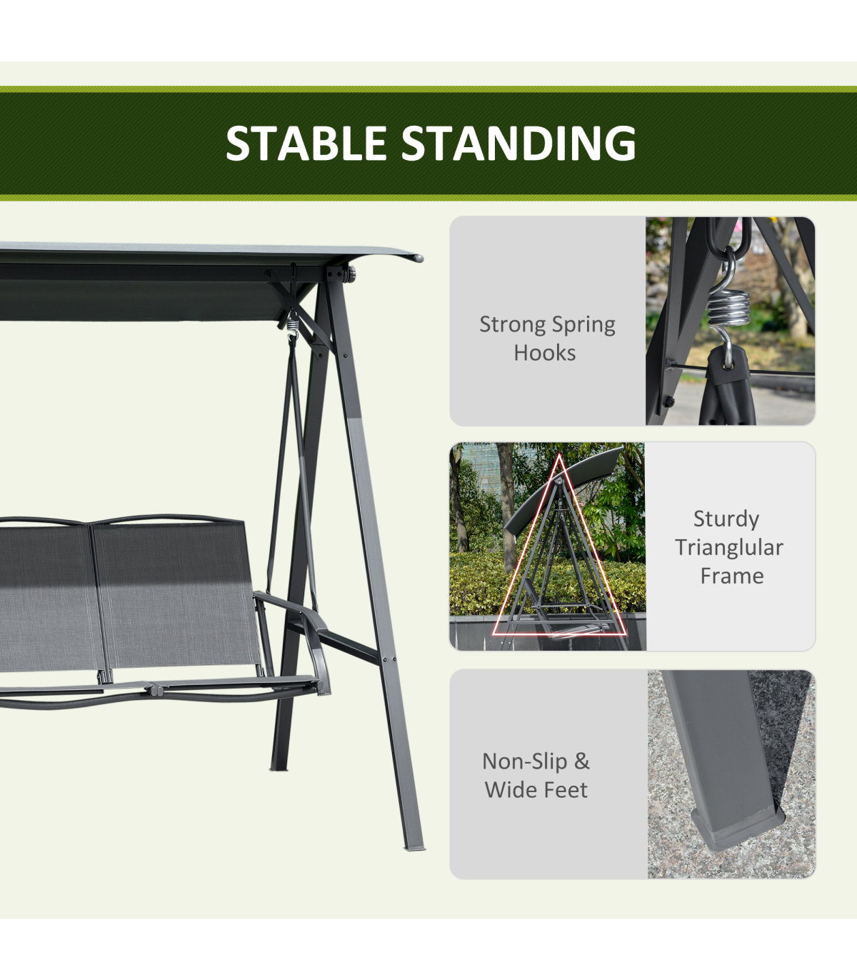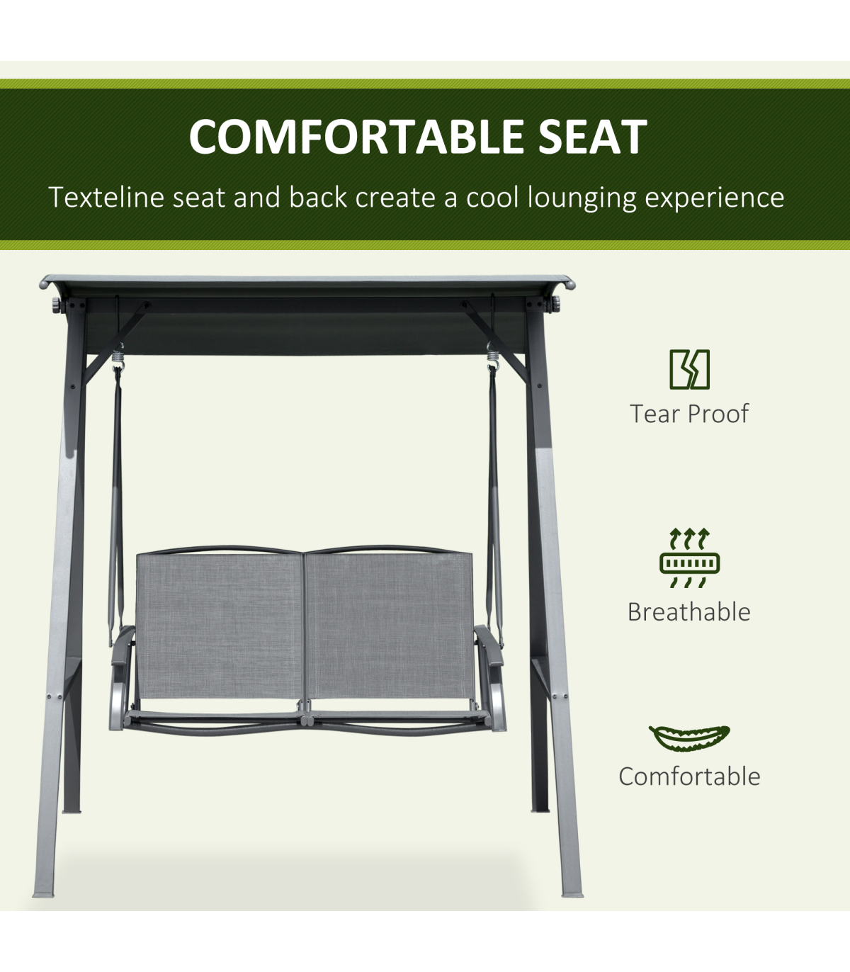 TILTING CANOPY: Adjust the position of the fabric roof easily - keeping you shaded at different positions of the sun. Enjoy this swing bench from morning to evening.