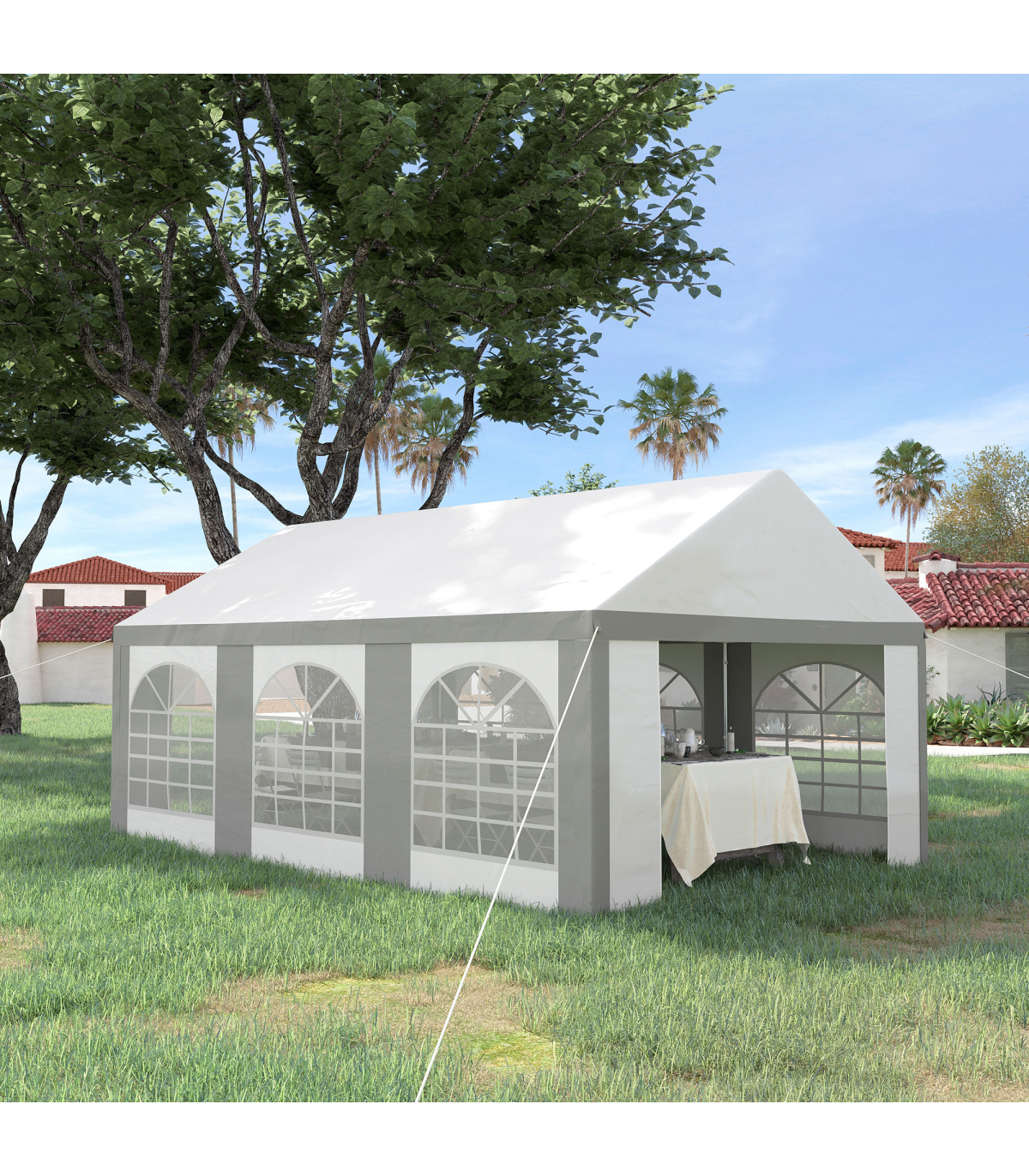 6 x 4m Party Tent, Marquee Gazebo with Sides, Six Windows and Double Doors