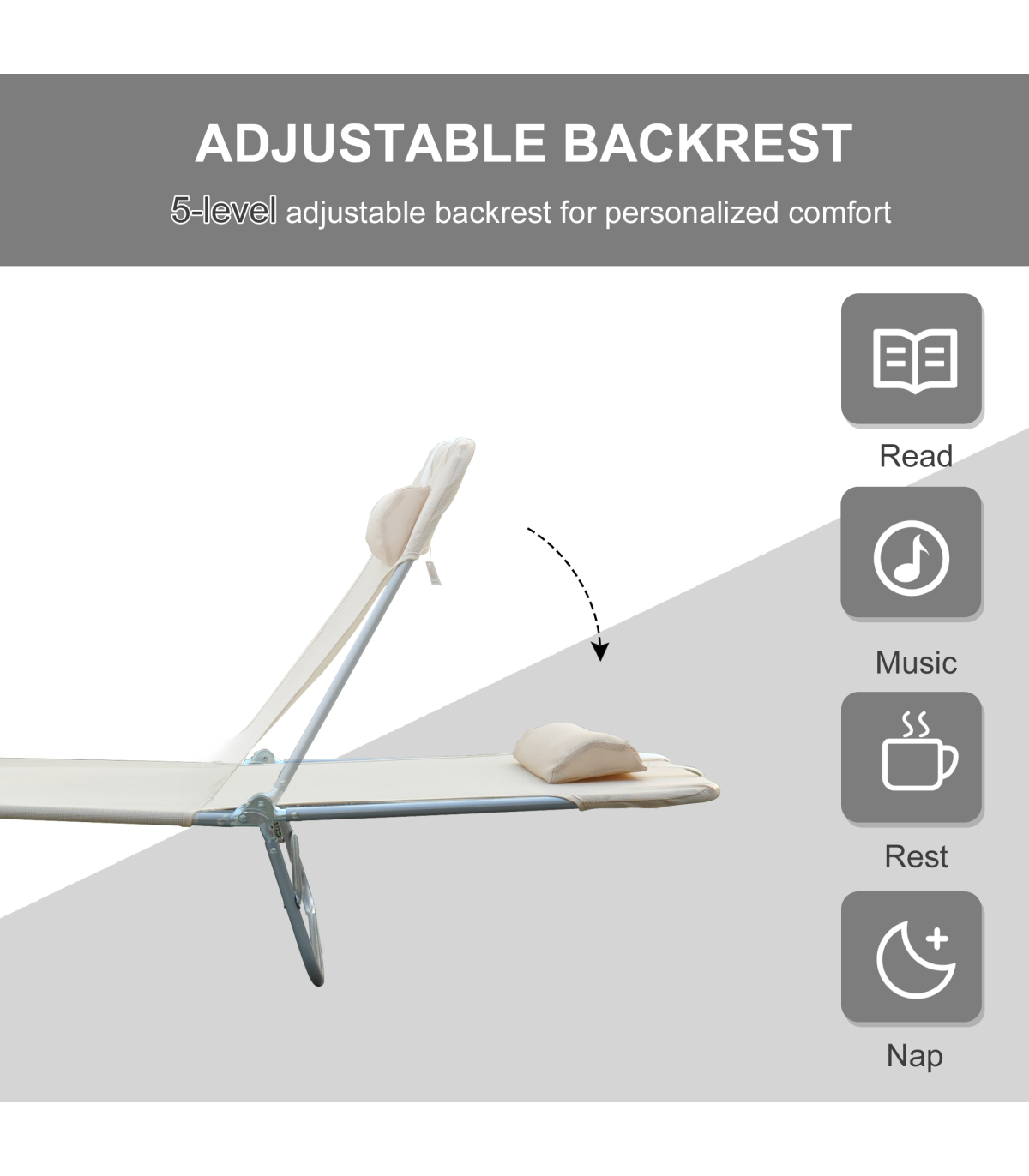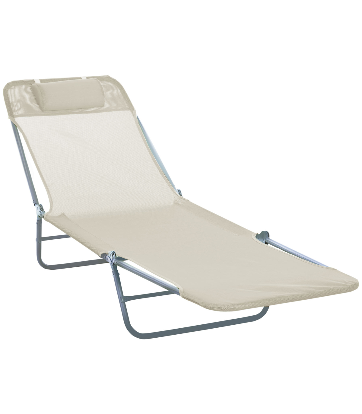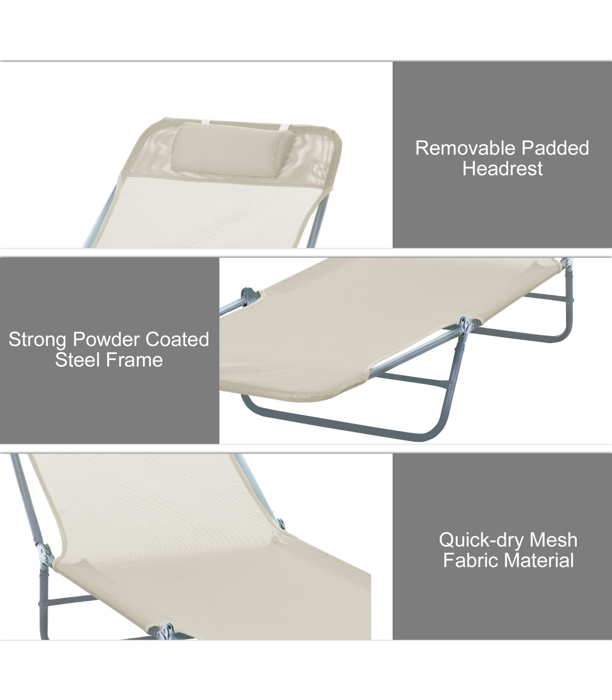 Outsunny Adjustable Sun Bed Garden Lounger Recliner Relaxing Camping Beige