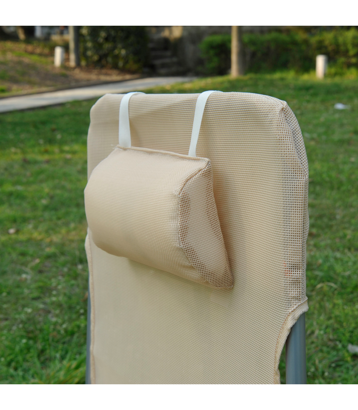 FOLDING DESIGN: It features a foldable design for easy transport and compact storage when not in use. Ideal for the patio, poolside, garden, and moreADJUSTABLE BACK: The sun bathing chaise recliner has an adjustable backrest with head pillow allows you to choose a level of personalized comfort. Pick your favorite and stick with it or adjust your position throughout the day, adjusts from 0-180eSTURDY FRAME: The lightweight steel frame supports up to 120KG, while remaining light enough to bring with you on the go for relaxation or adventureDURABLE MATERIAL: Quick-dry mesh fabric material makes our patio lounger particularly well-suited for the backyard, patio and other outdoor environmentsDIMENSIONS: 182L x 56W x 24.5Hcm. MAXIMUM WEIGHT CAPACITY 120KG