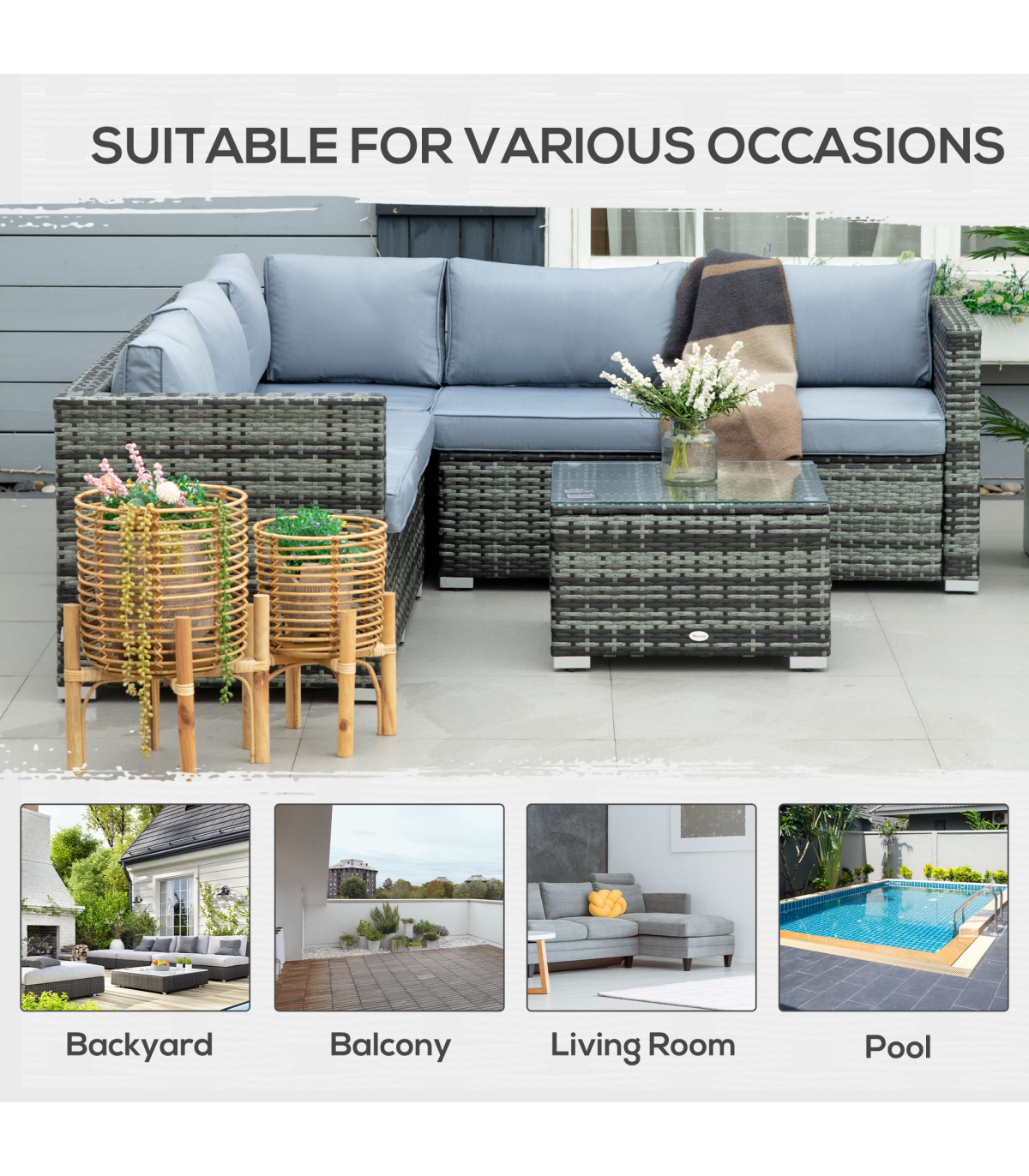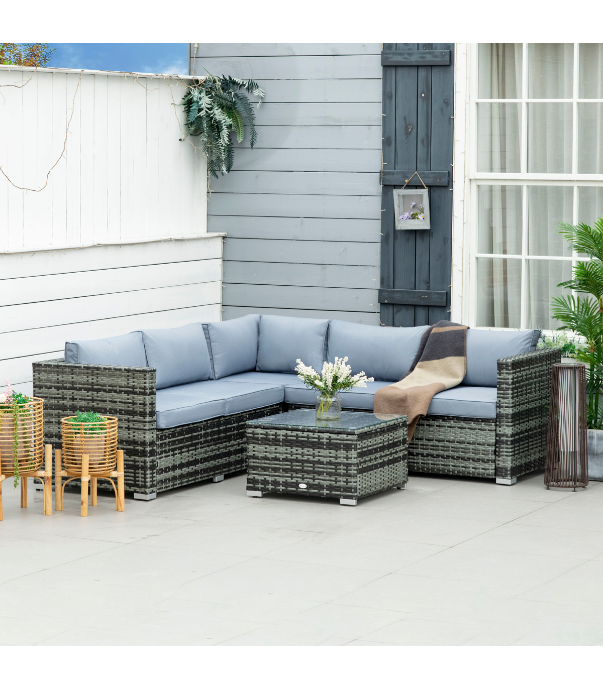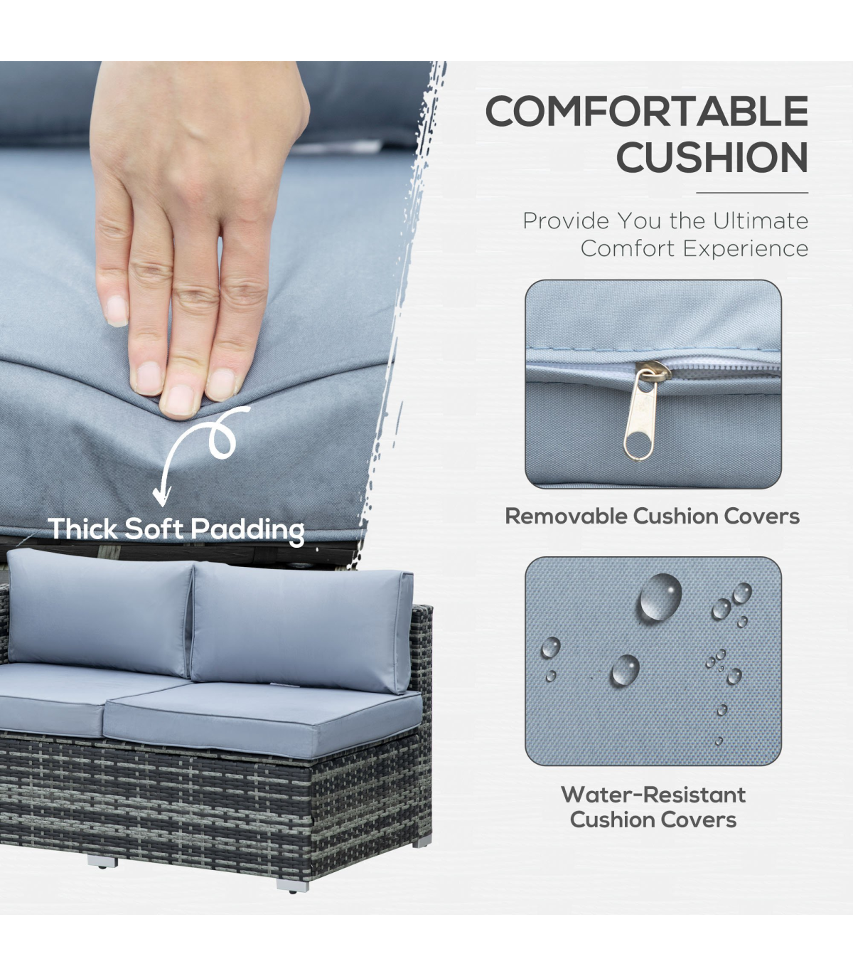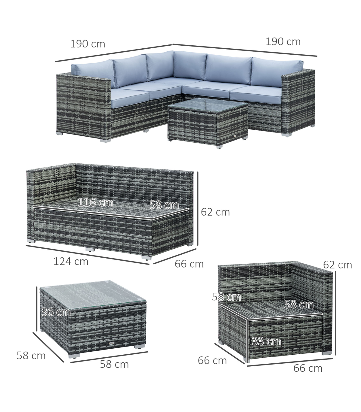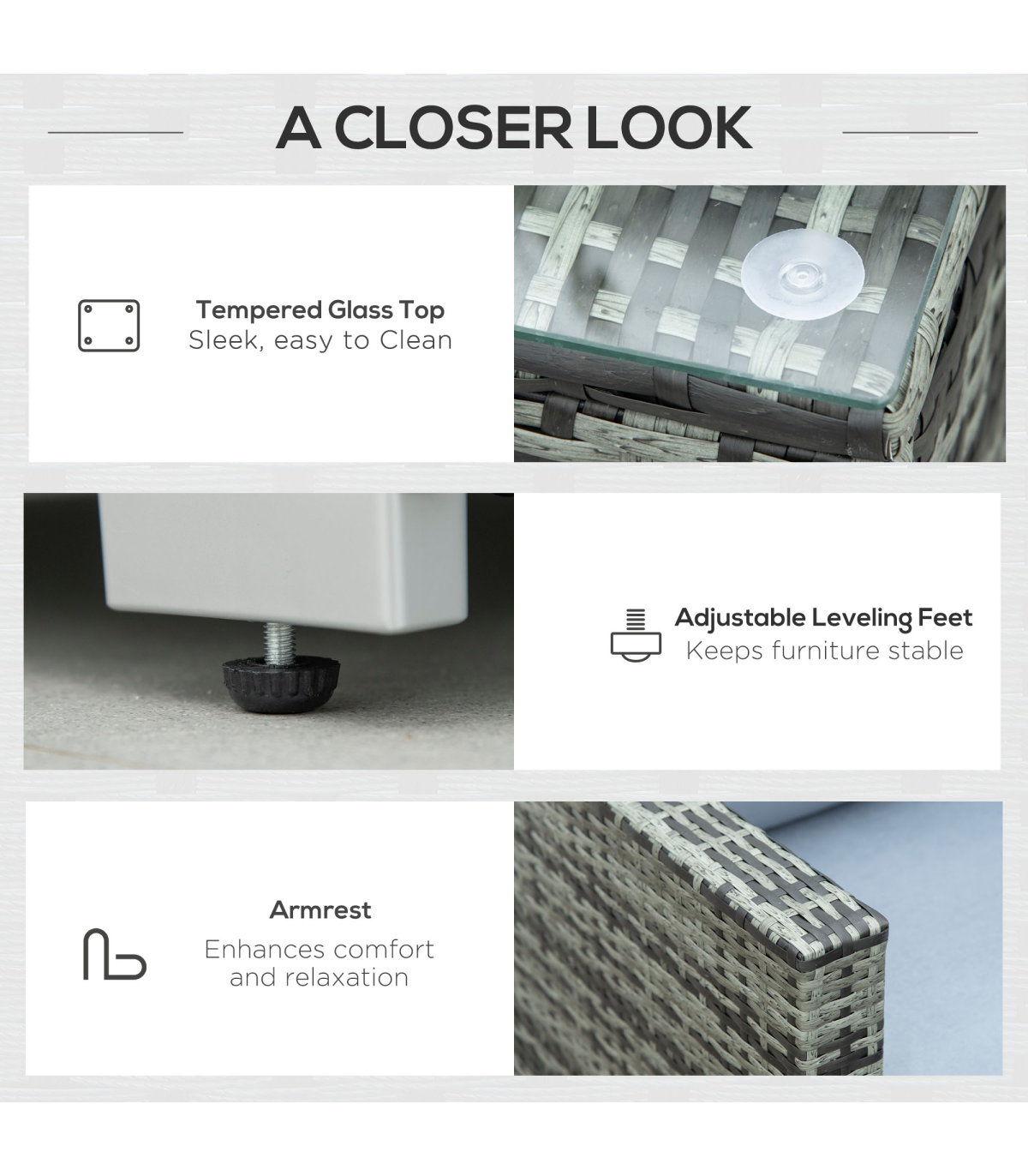 Outsunny 4 Pieces Rattan Furniture Sofa Set Chair w/ Corner Sofa Loveseat Grey