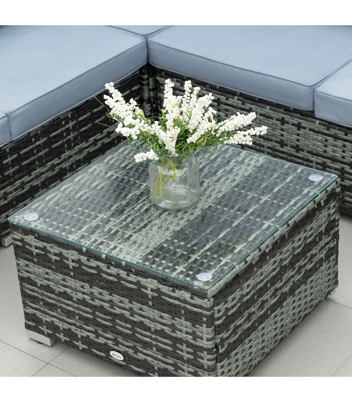 This Outsunny rattan furniture set allows you to rest and relax outdoors. Rust-resistant steel frames make strong pieces, with plastic wicker for a beautiful and durable rattan look. Seat and back cushions for comfort. Tempered glass tabletop for a sleek look - easy to maintain.