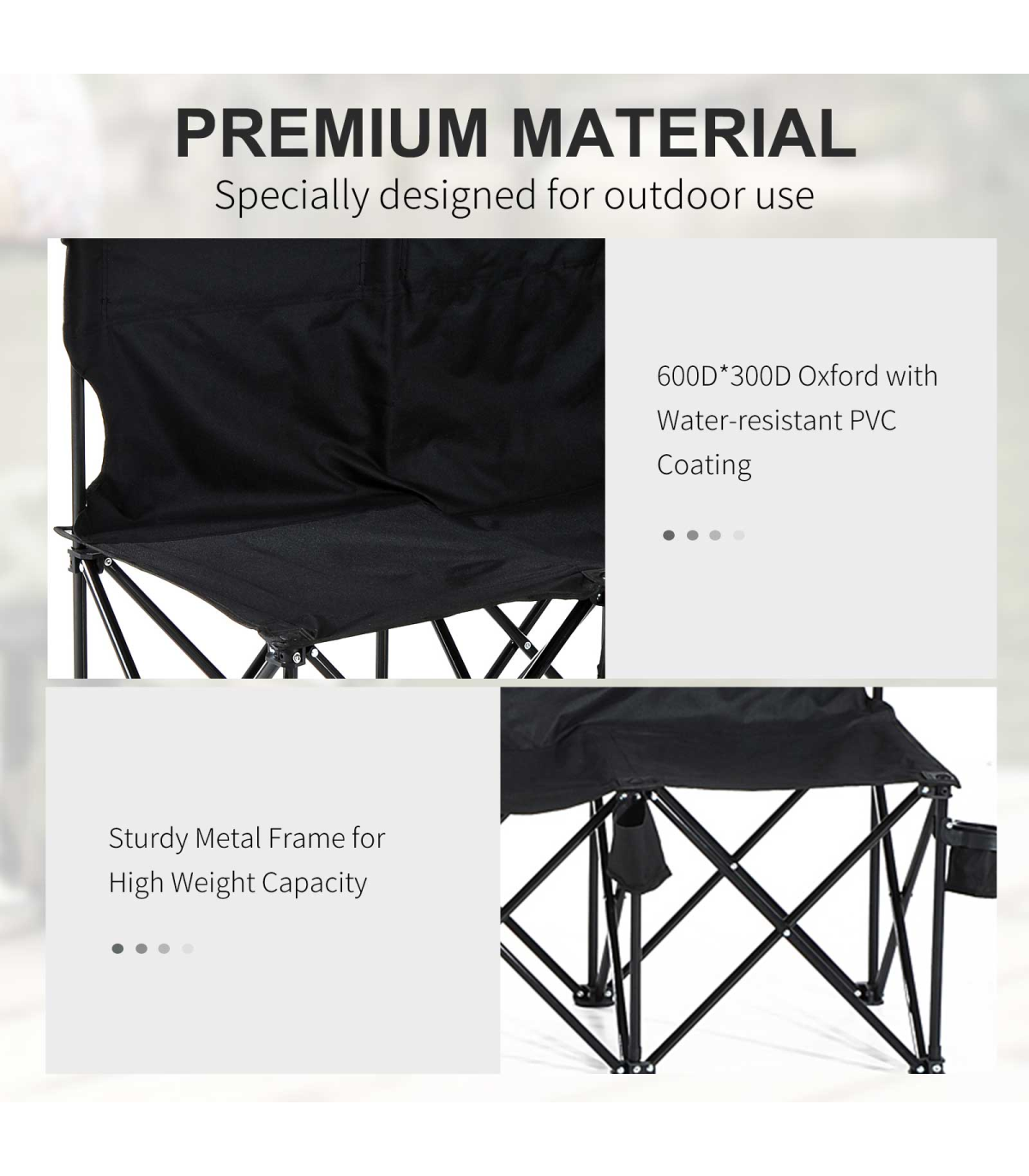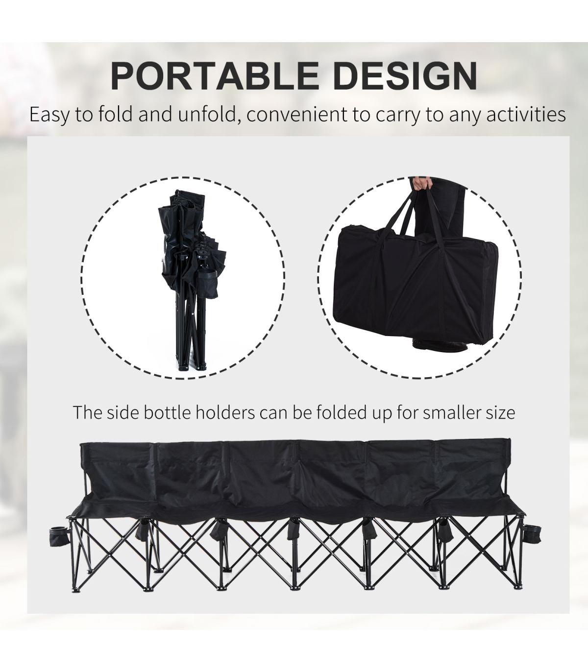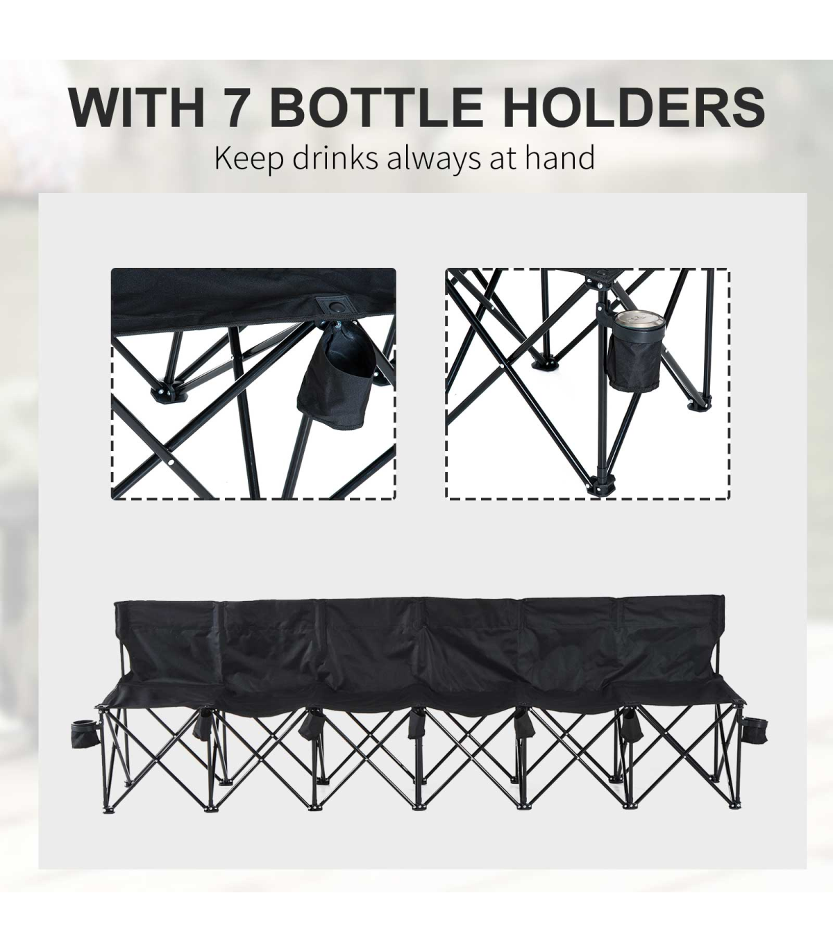 Outsunny 6 Seat Folding Bench Multi Deck Chair Cup Holder Camping Steel Black