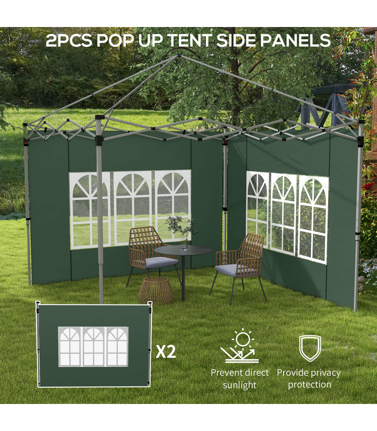 Outsunny Gazebo Side Panels for 3x3(m) or 3x4m Pop Up Gazebo, 2 Pack, Green