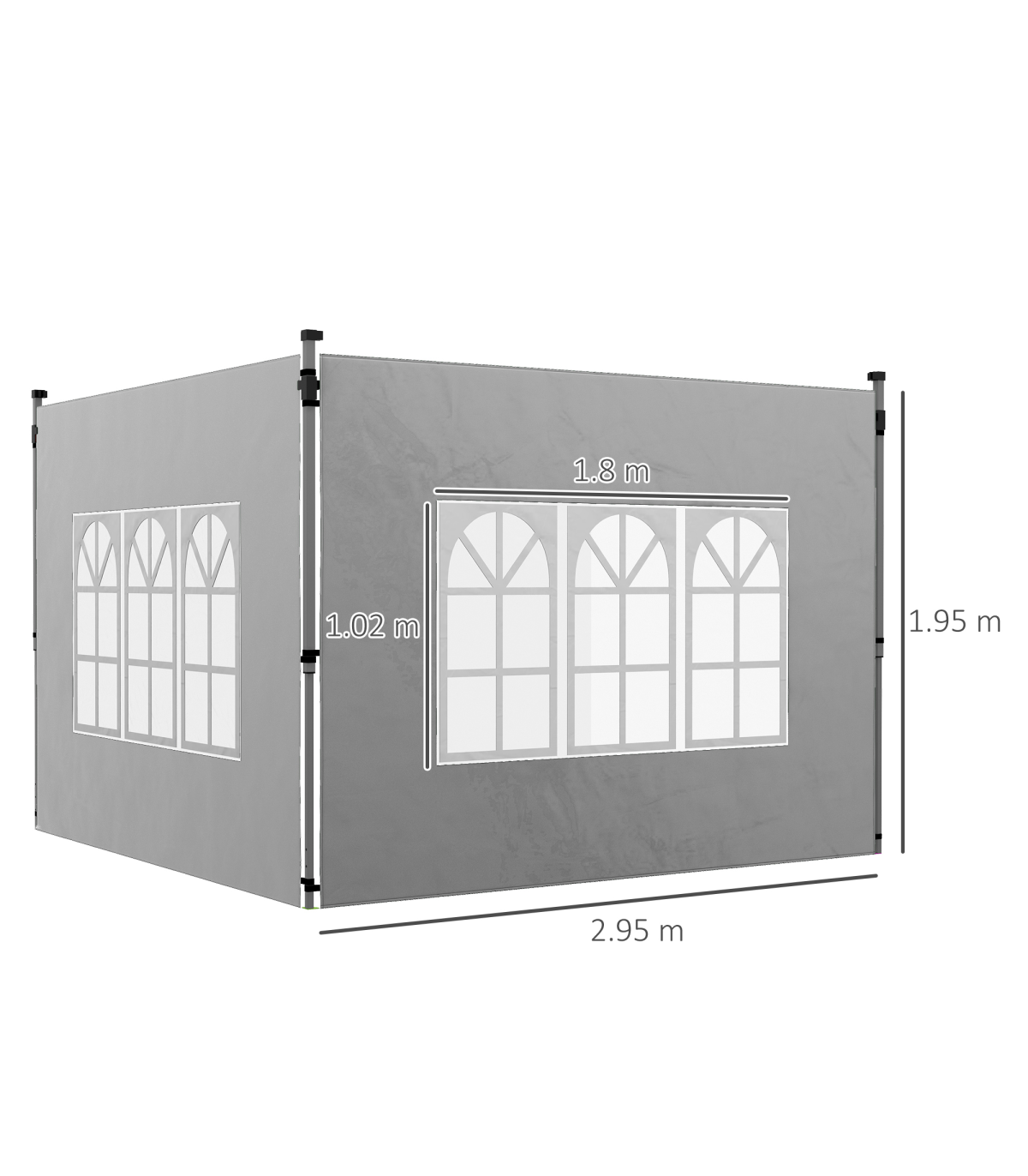 Outsunny Gazebo Side Panels for 3x3(m) or 3x4m Pop Up Gazebo, 2 Pack, Grey