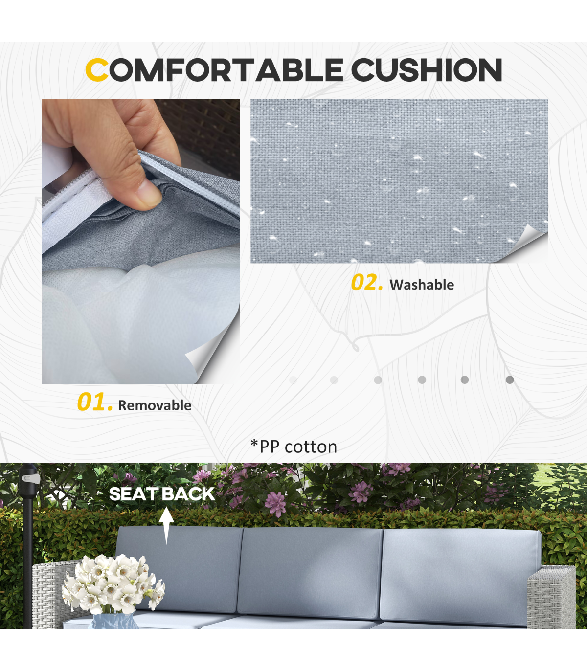 ? PP cotton padded cushions for comfort, with washable covers