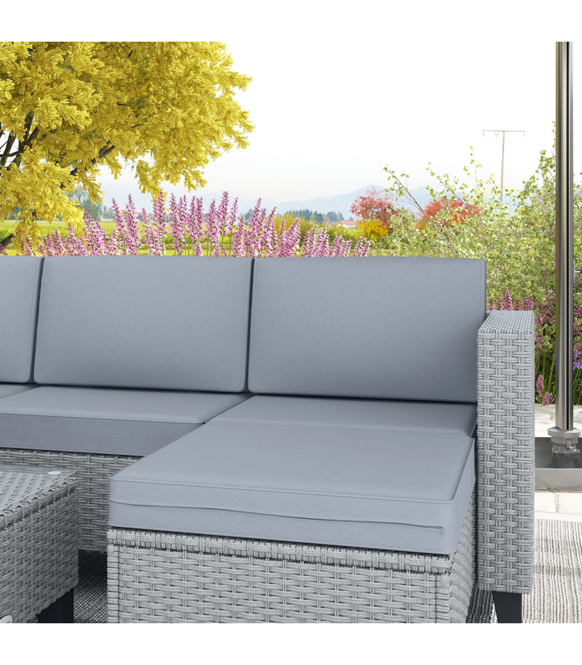 ? Material: Galvanised Metal, PE Rattan, Yarn-dyed Fabric (Polyester)