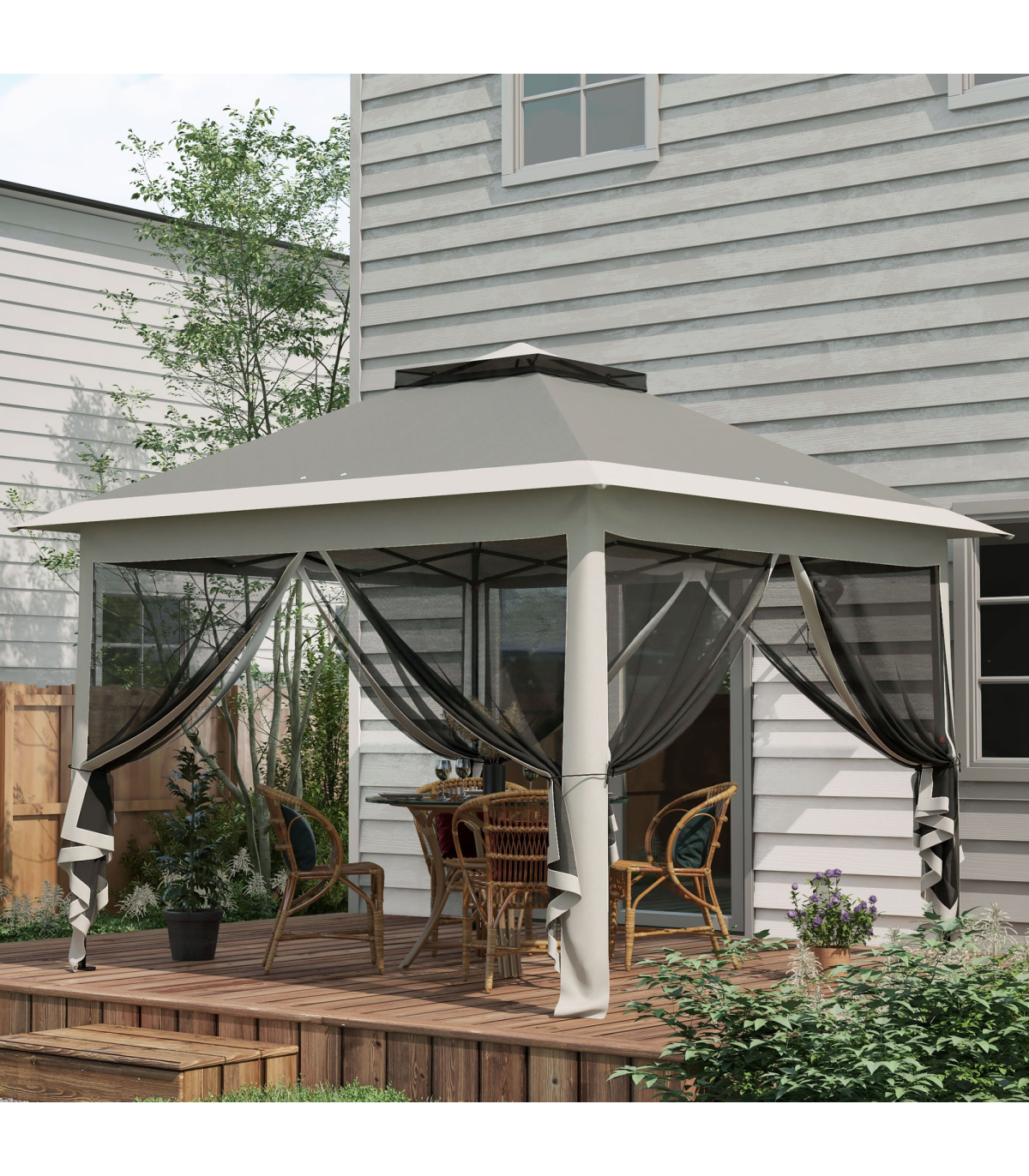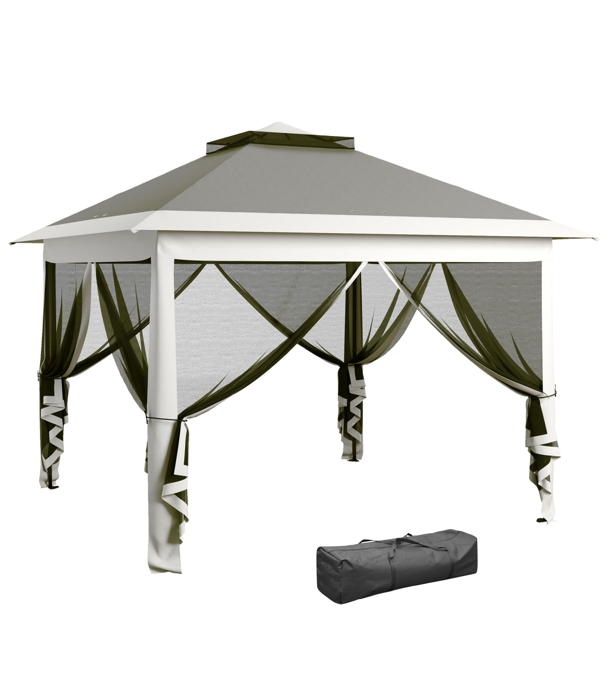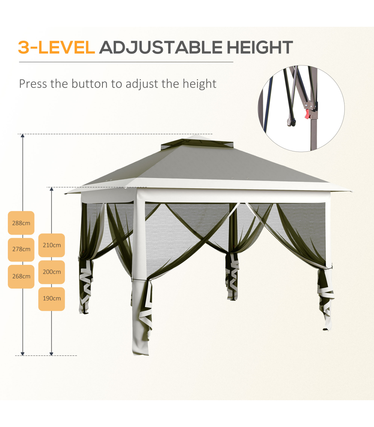 choose the height suitable for your party requirements. It comes with net curtain walls to create an open or closed place, with middle zip fastenings to enter and leave easily. 4x guy ropes, 8x ground stakes and a carry bag included.