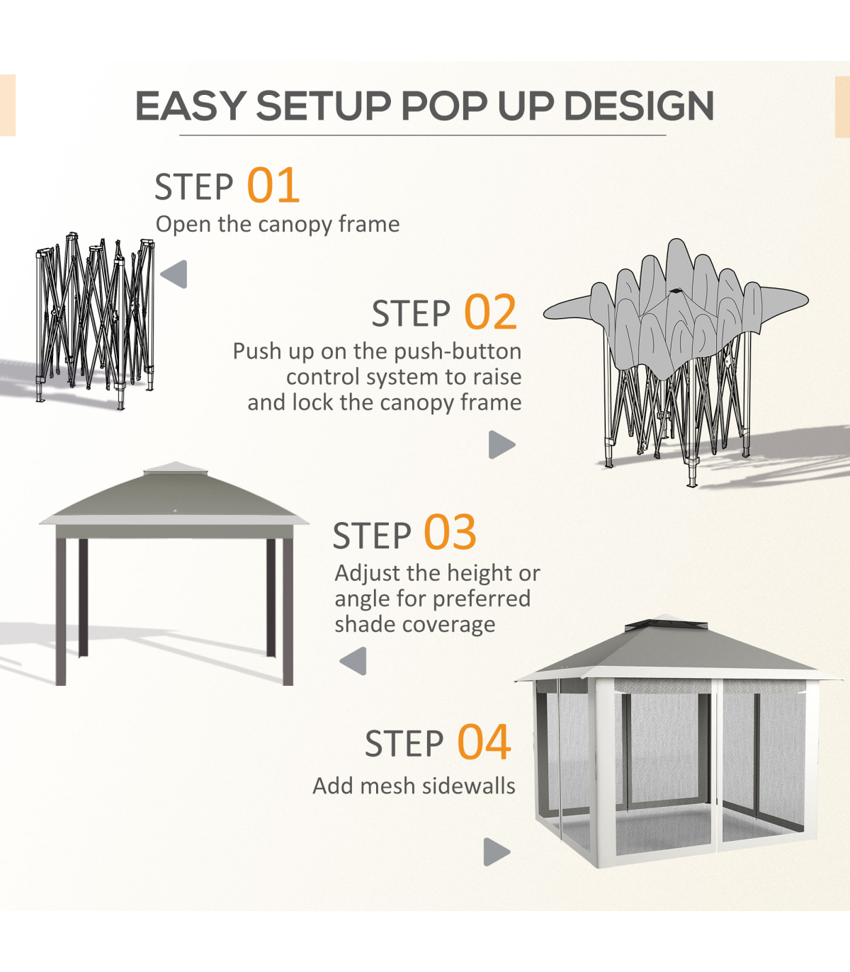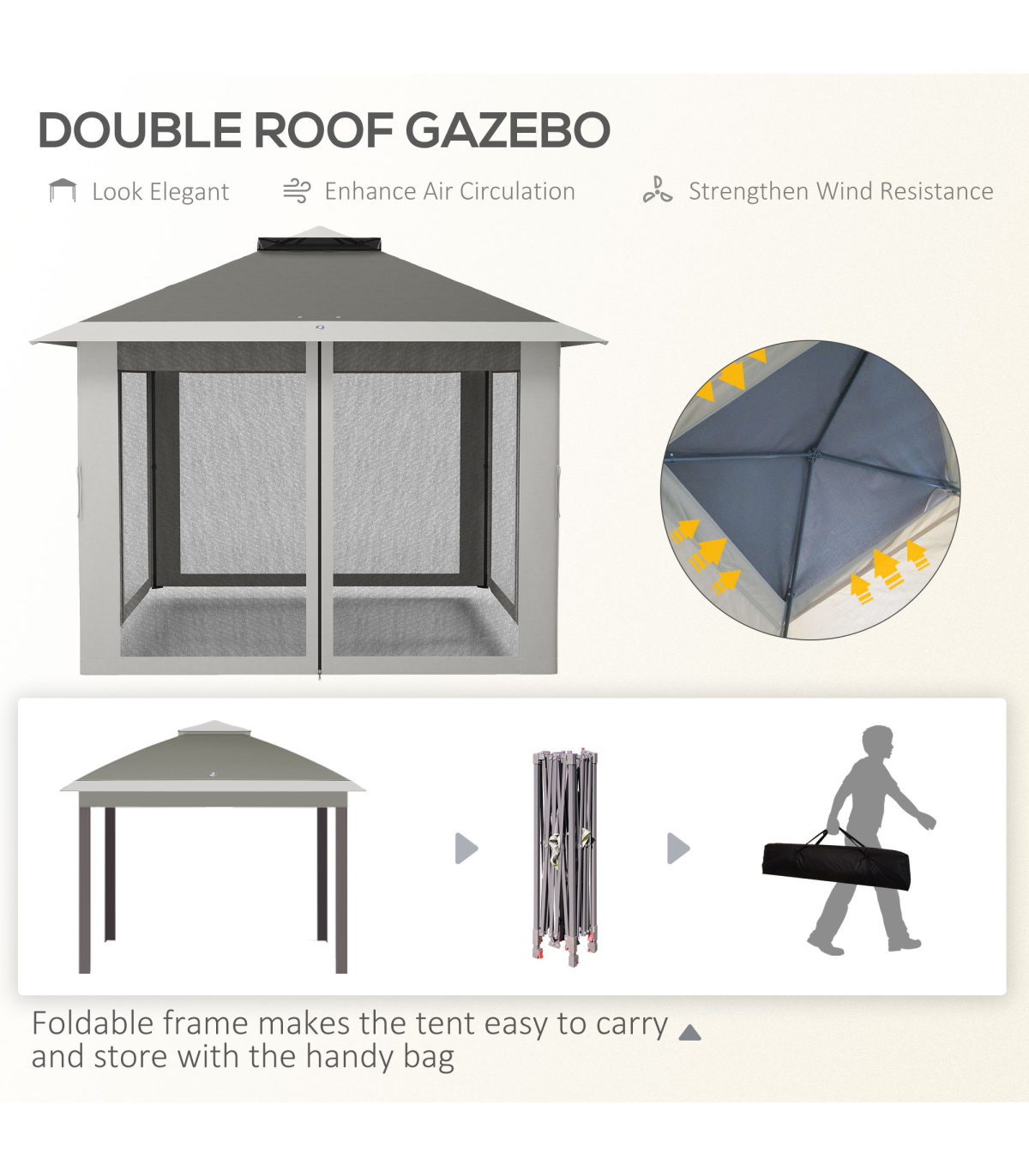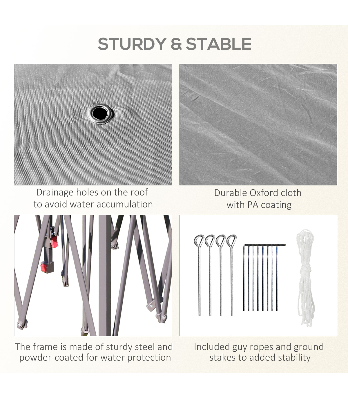 choose the height suitable for your party requirements. It comes with net curtain walls to create an open or closed place, with middle zip fastenings to enter and leave easily. 4x guy ropes, 8x ground stakes and a carry bag included.