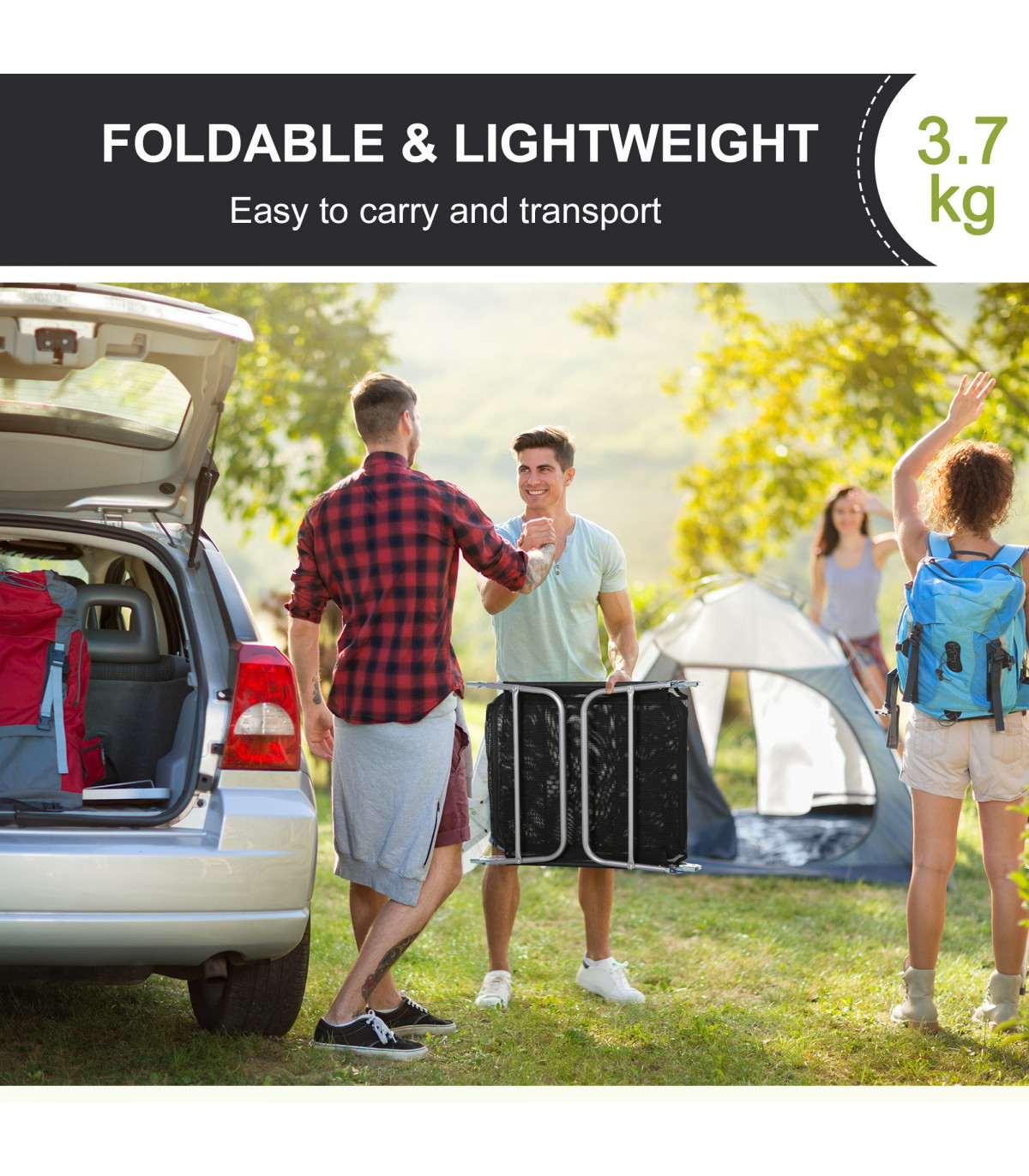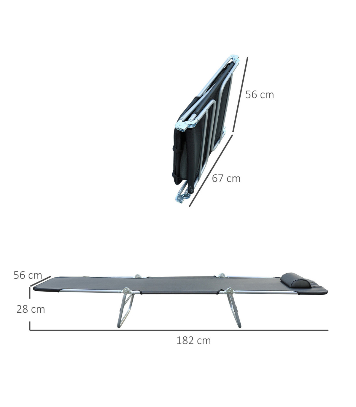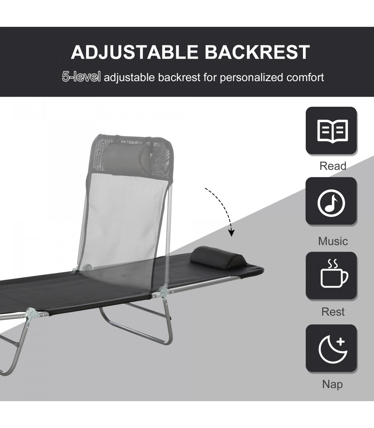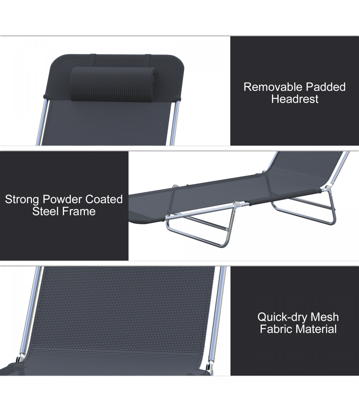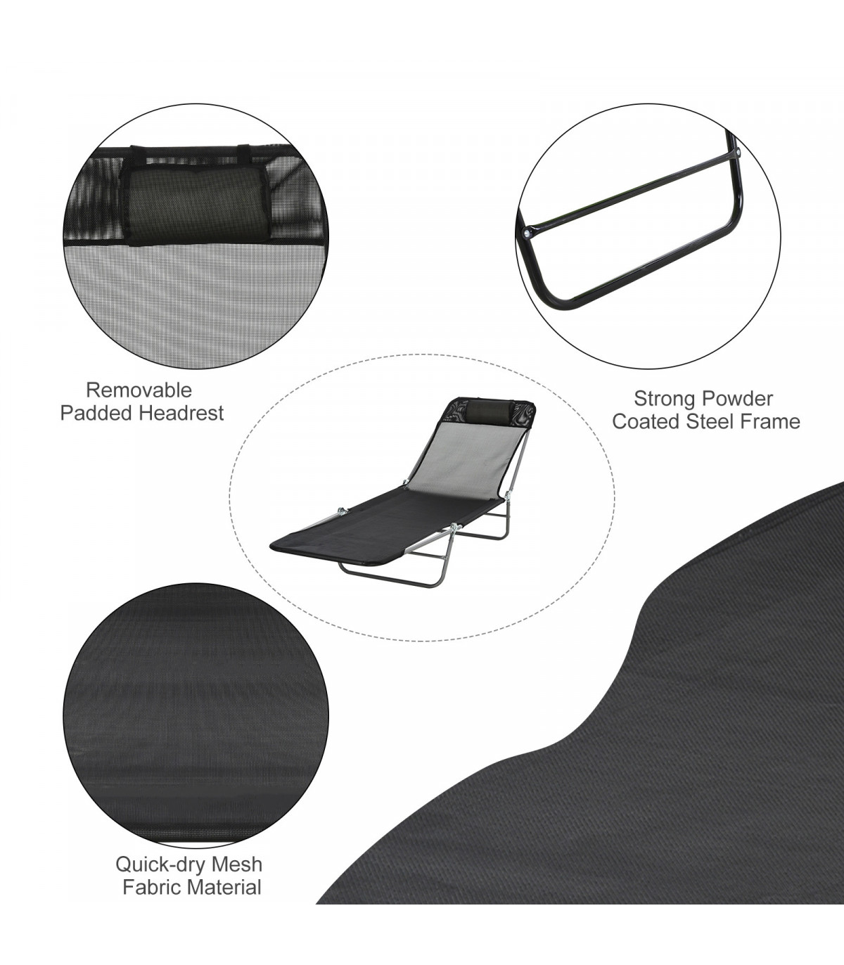 Adjustable Sun Bed Garden Lounger Recliner Relaxing Camping Black