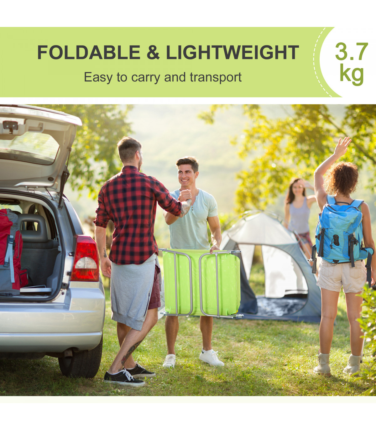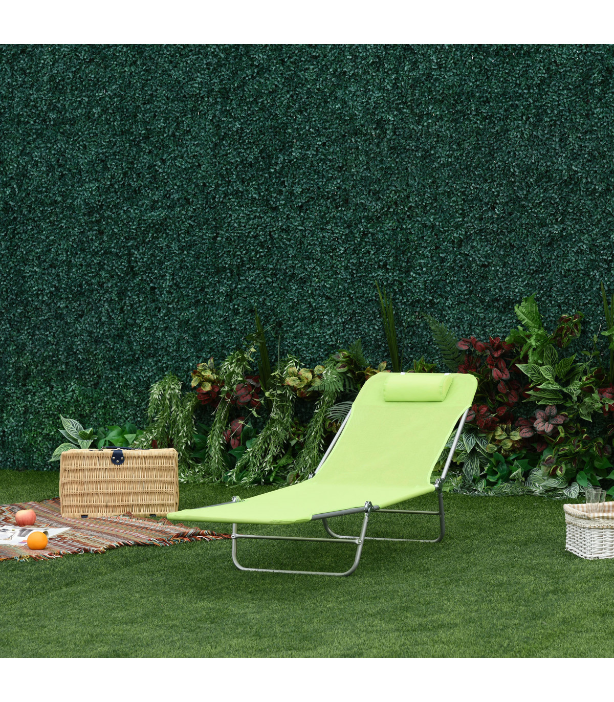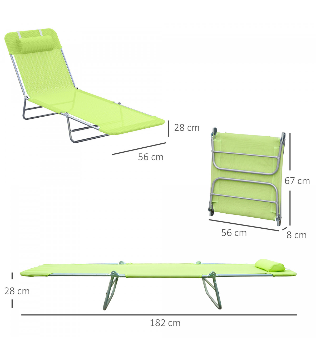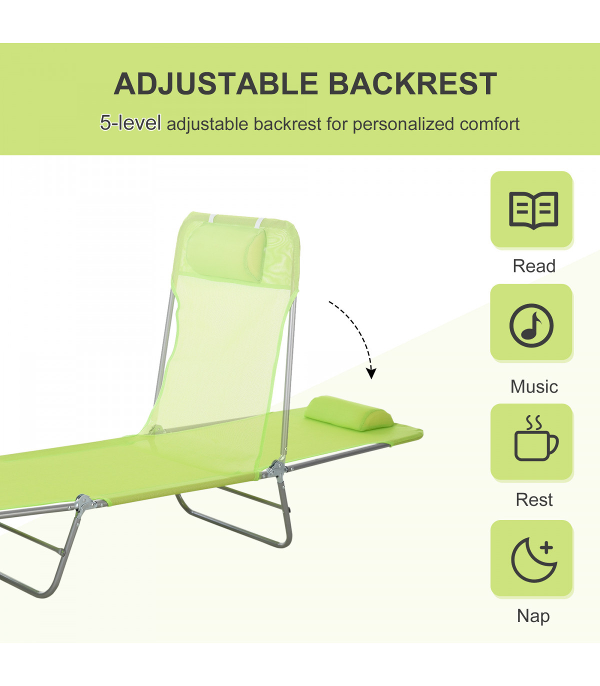 Adjustable Sun Bed Garden Lounger Recliner Relaxing Camping Light Green