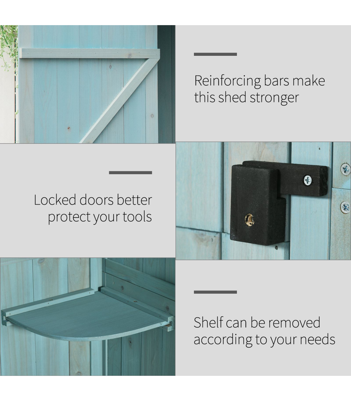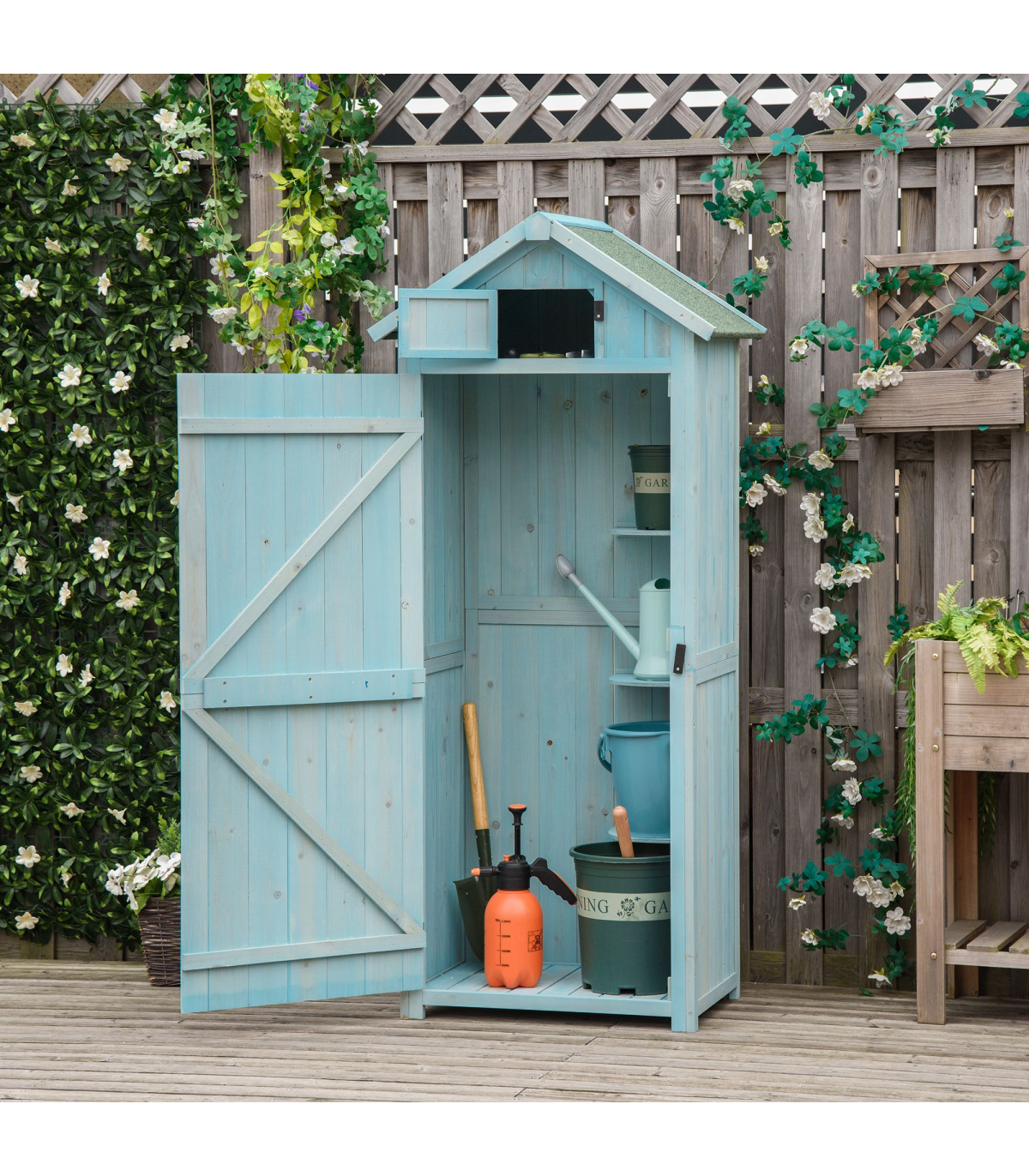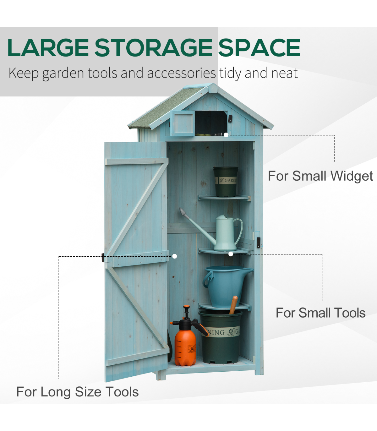 • Offers compact and practical space to store your garden tools and equipment