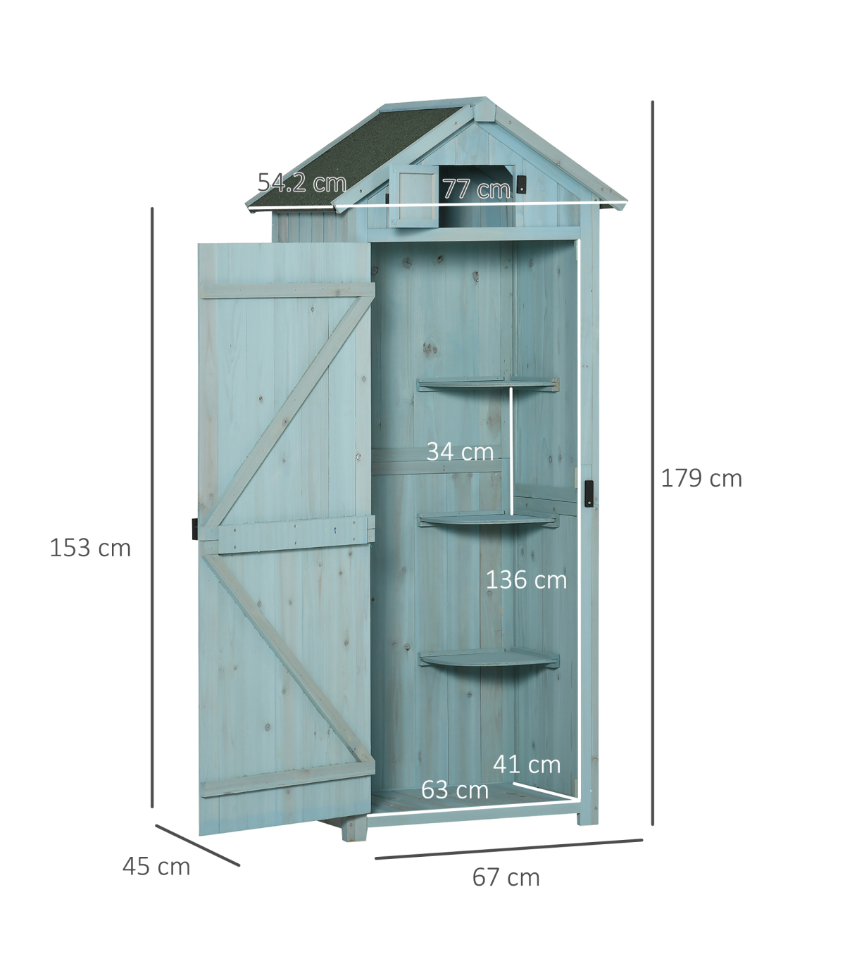 Wooden Garden Storage Shed Tool Storage Box, 77 x 54 x 179 cm, Blue