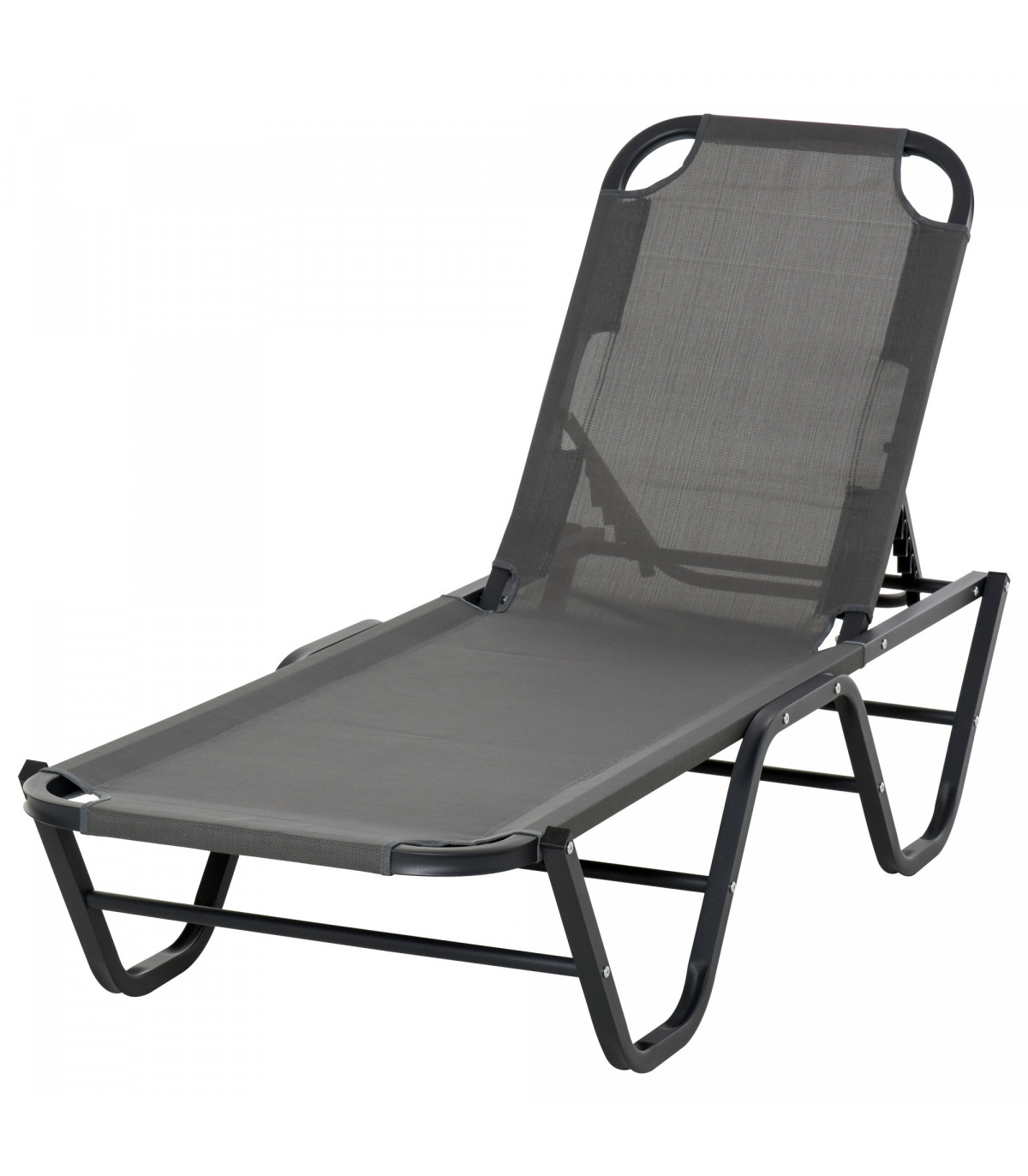Sun Lounger Relaxer Recliner with 5-Position Adjustable Backrest Grey