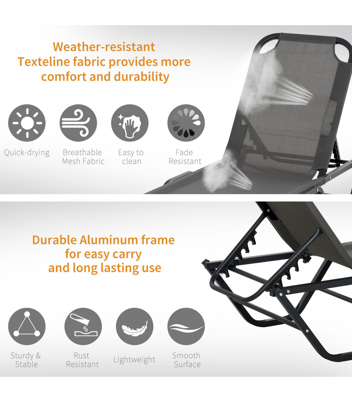 The simple and easy way to relax outdoors - grab this minimalistic Outsunny lounger. Using aluminium for a frame which is tough - powder coated for extra strength - you are able to relax with full support; the four stump legs keep you balanced. The back is adjustable to five different positions, you are able to lie back to an angle you find most comfortable. The fabric seat is soft and smooth on the skin, making your time under the sun as enjoyable as ever before.