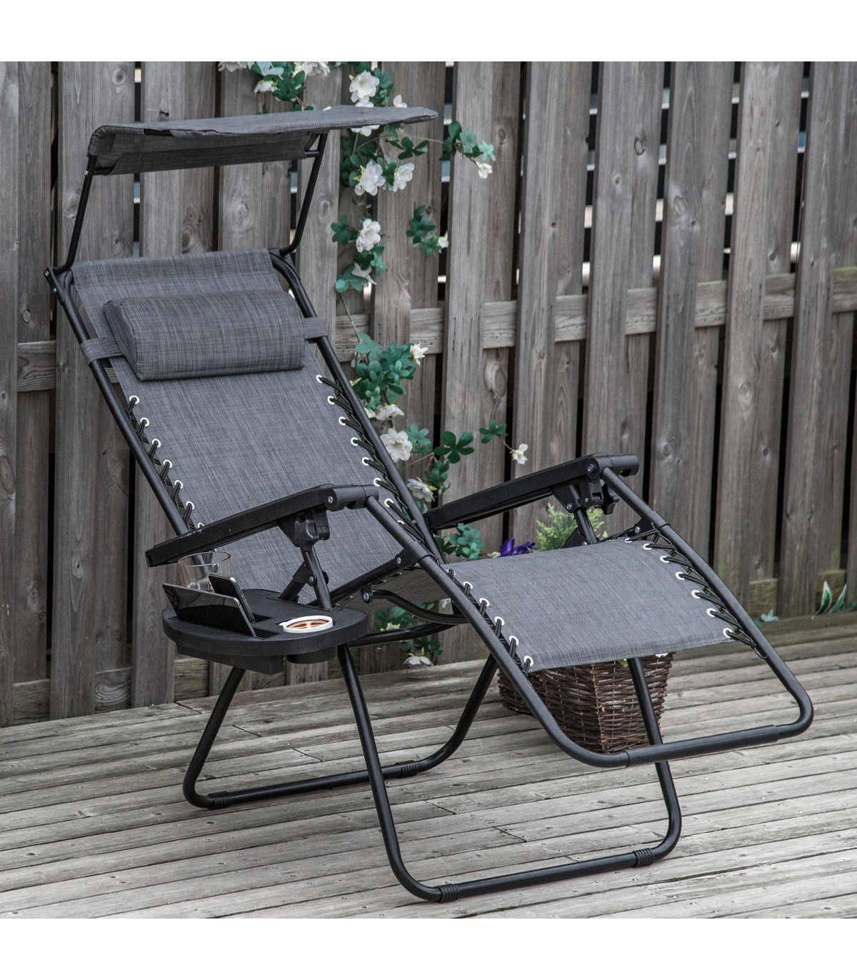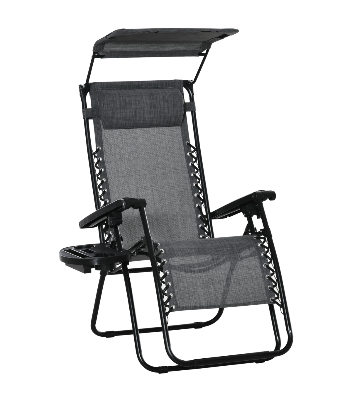 Steel Frame Zero Gravity Outdoor Garden Deck Chair with Canopy - Light Grey
