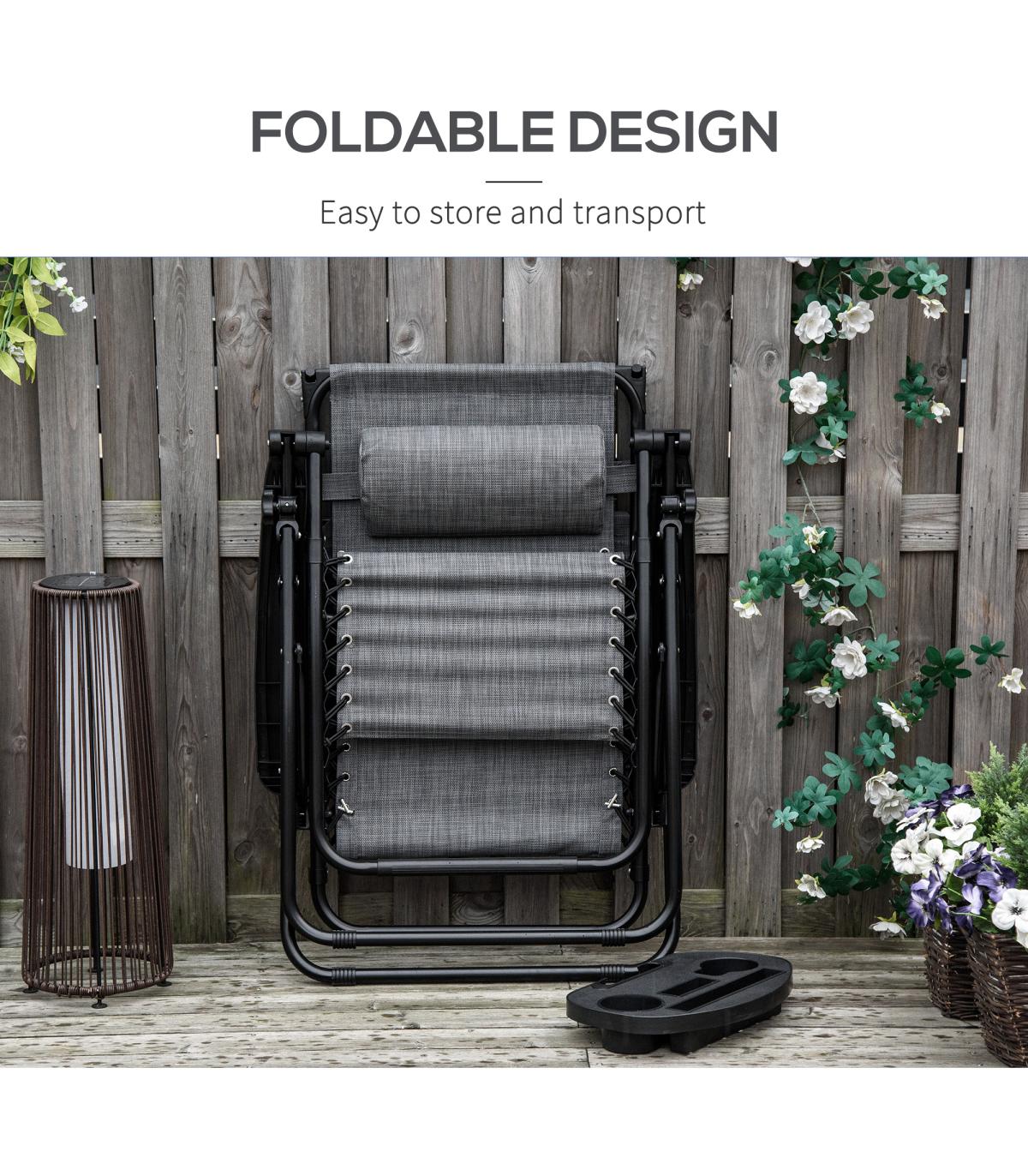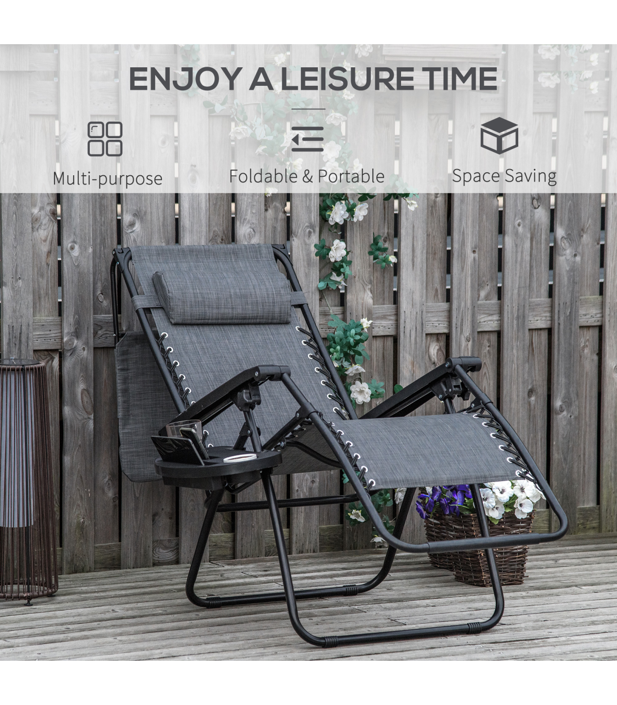 • Removable side tray holder to keep drinks, magazines and your phone etc. close to you