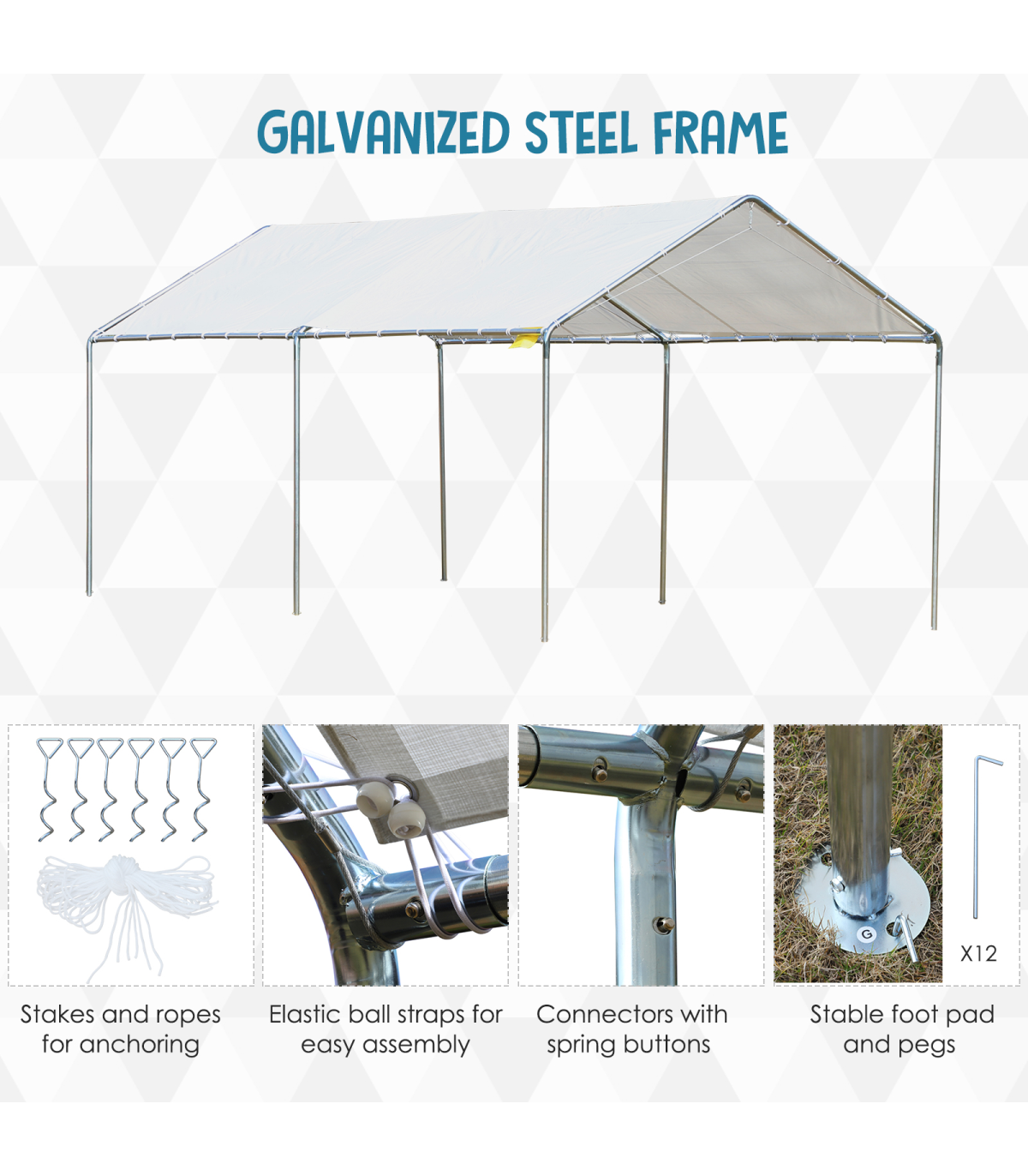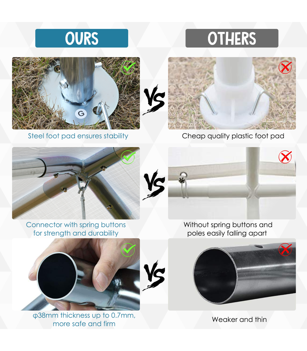 - Galvanised steel frame is tough and solid to keep structure upright