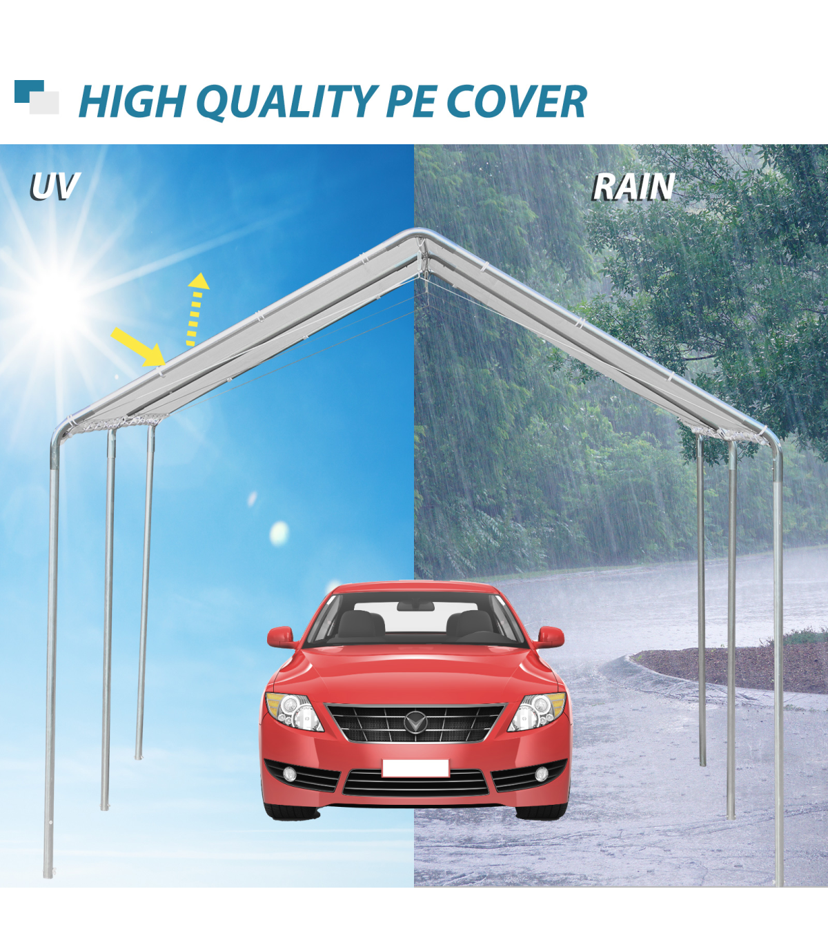 - Weather-resistant canopy to shield below from light wind, rain, UV rays and dirt from above