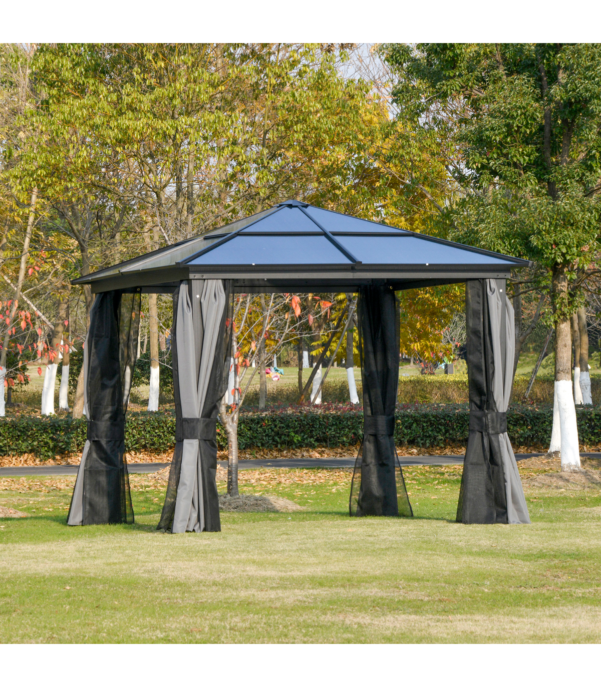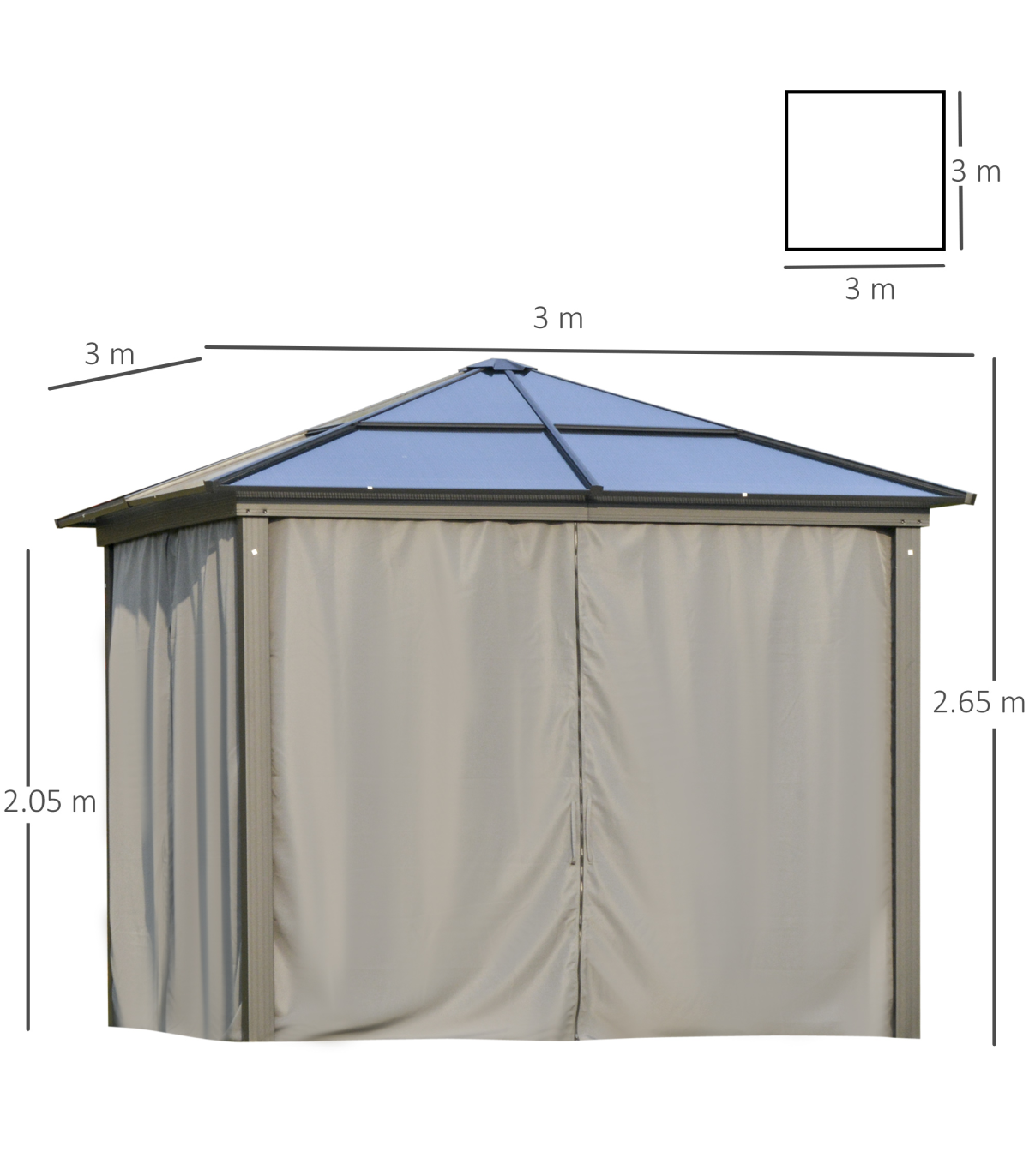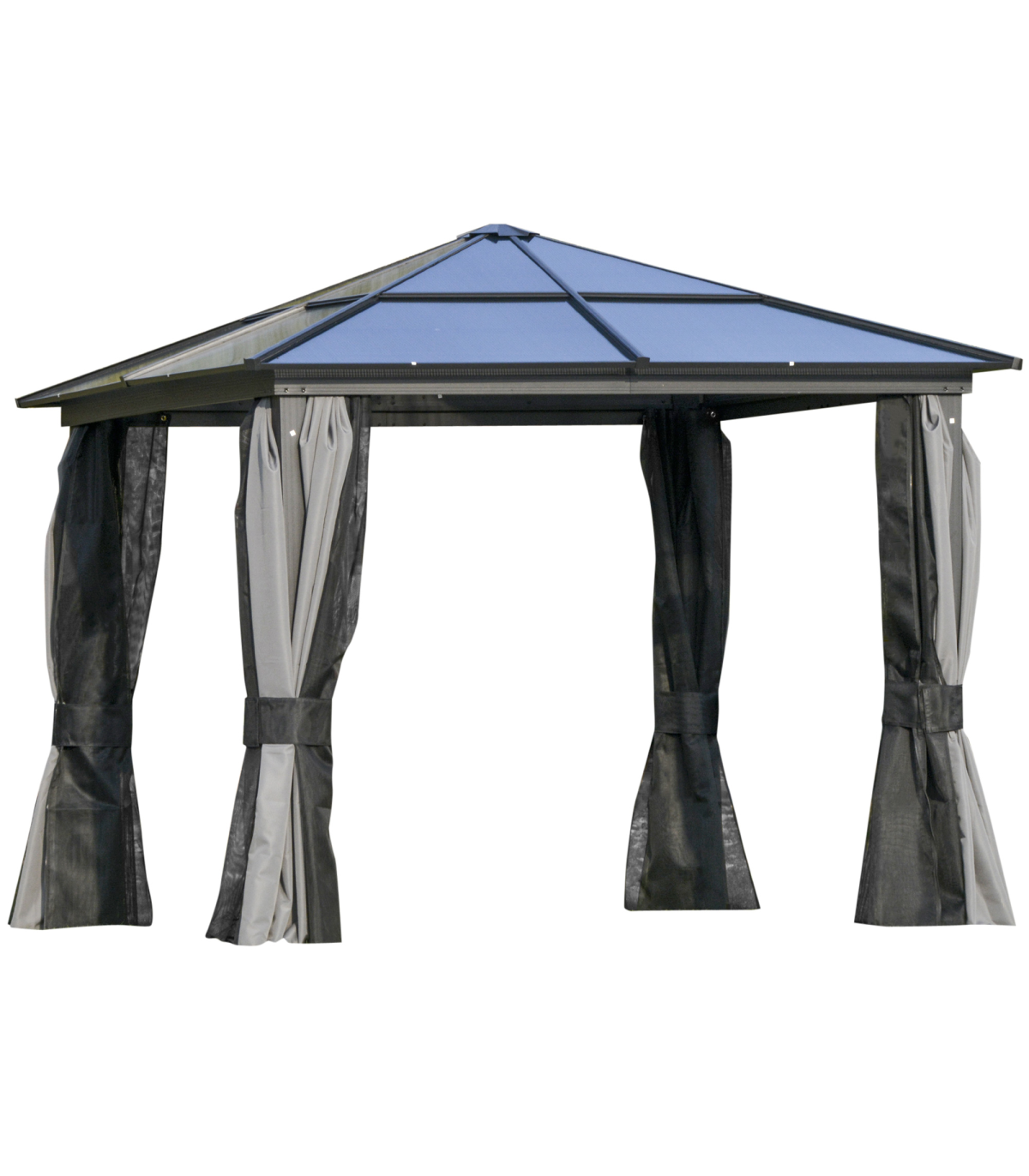 PC Aluminium Hardtop Gazebo with Curtains and Netting 3 x 3m