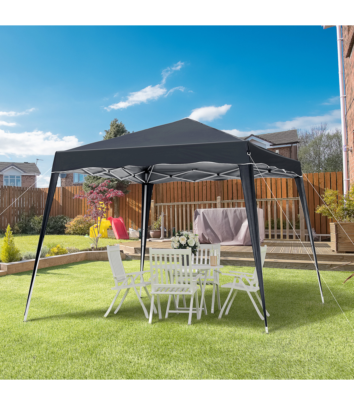 The Outsunny pop up gazebo tent is the ideal solution to keep your group of family or friends shaded during outdoor gatherings. Suitable recreational use, the square-shaped tent works well for anything from summertime craft fairs, street festivals, picnics, events and more. Measuring 3 M x 3 M, this tent offers enough room for setting up multiple tables in a variety of configuration.