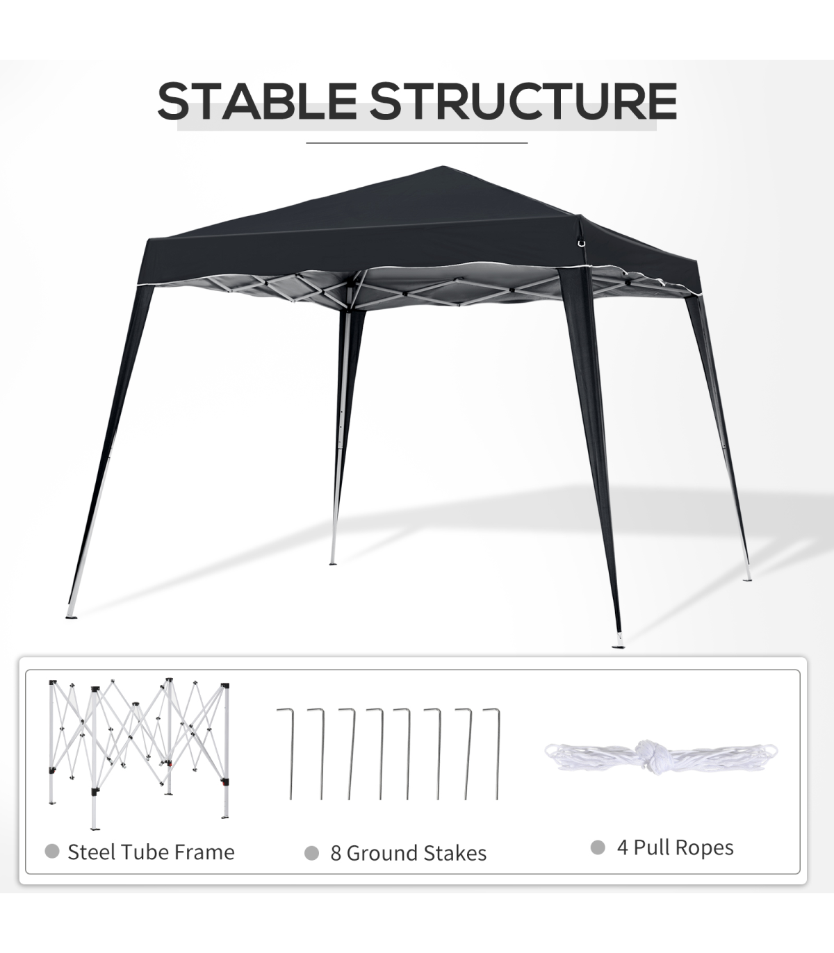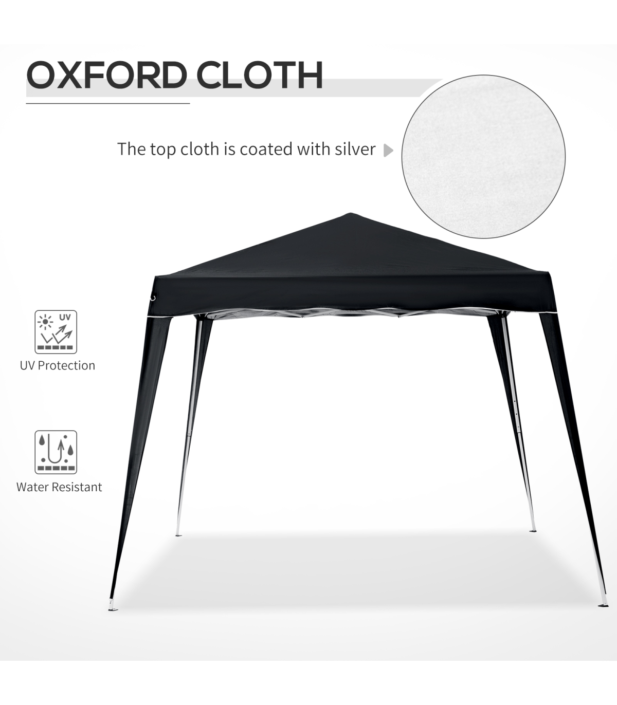 Made from a rust-resistant steel frame, to help endure all types of weather A water-resistant silver-coated cover made of 210D Oxford fabric helps to block harmful UV rays Foldable design makes this party tent easy to store Included ropes and ground stakes offer added durability and stability Comes with a portable carrying bag for easy transportation Ideal for most type recreational use Measuring 3M x 3M, this tent offers enough room for setting up multiple tables Assembly required