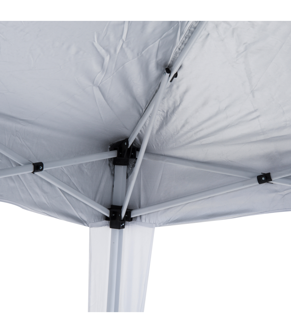 Made from a rust-resistant steel frame, to help endure all types of weather A water-resistant silver-coated cover made of 210D Oxford fabric helps to block harmful UV rays Foldable design makes this party tent easy to store Included ropes and ground stakes offer added durability and stability Comes with a portable carrying bag for easy transportation Ideal for most type recreational use Measuring 3M x 3M, this tent offers enough room for setting up multiple tables Assembly required