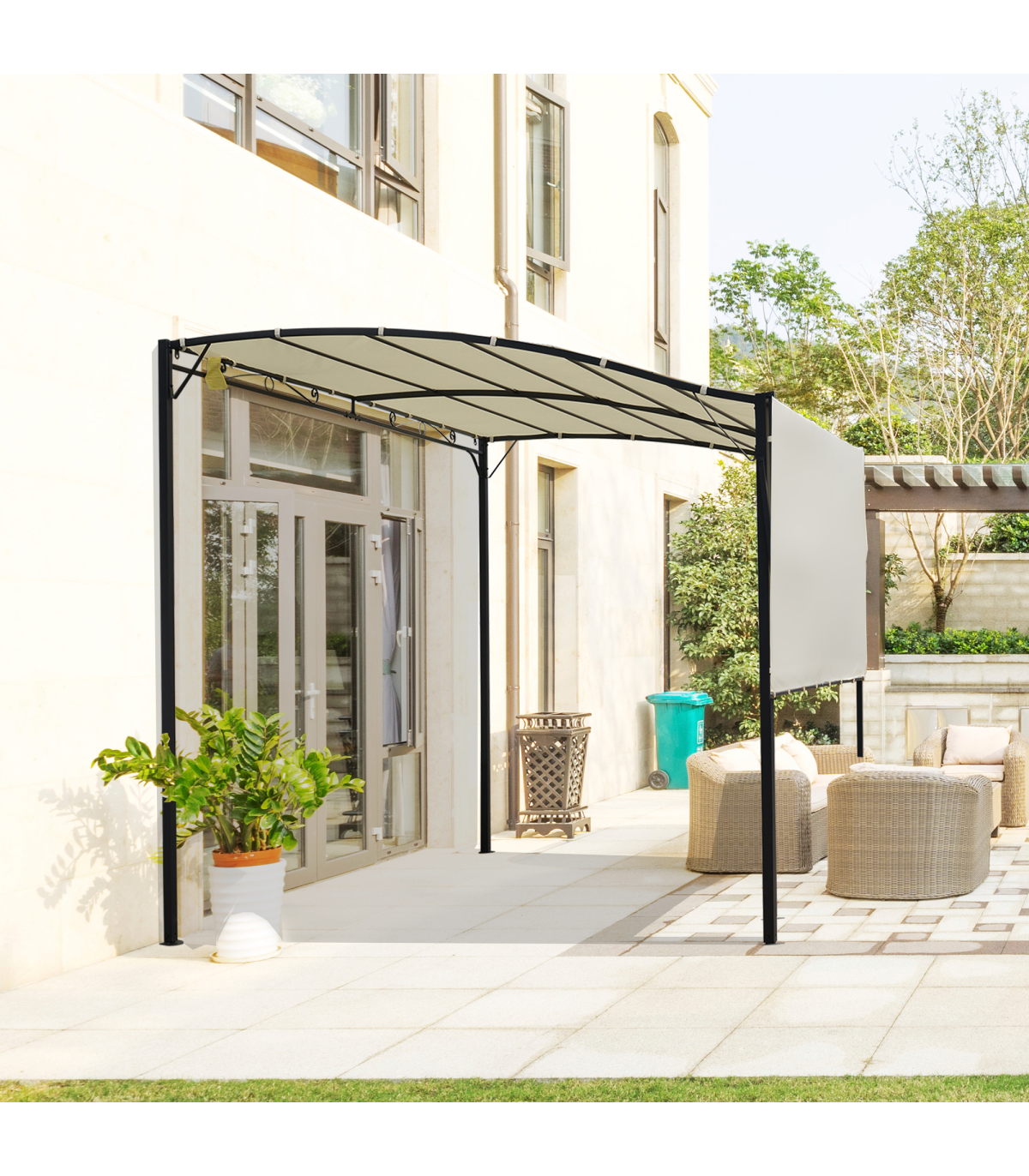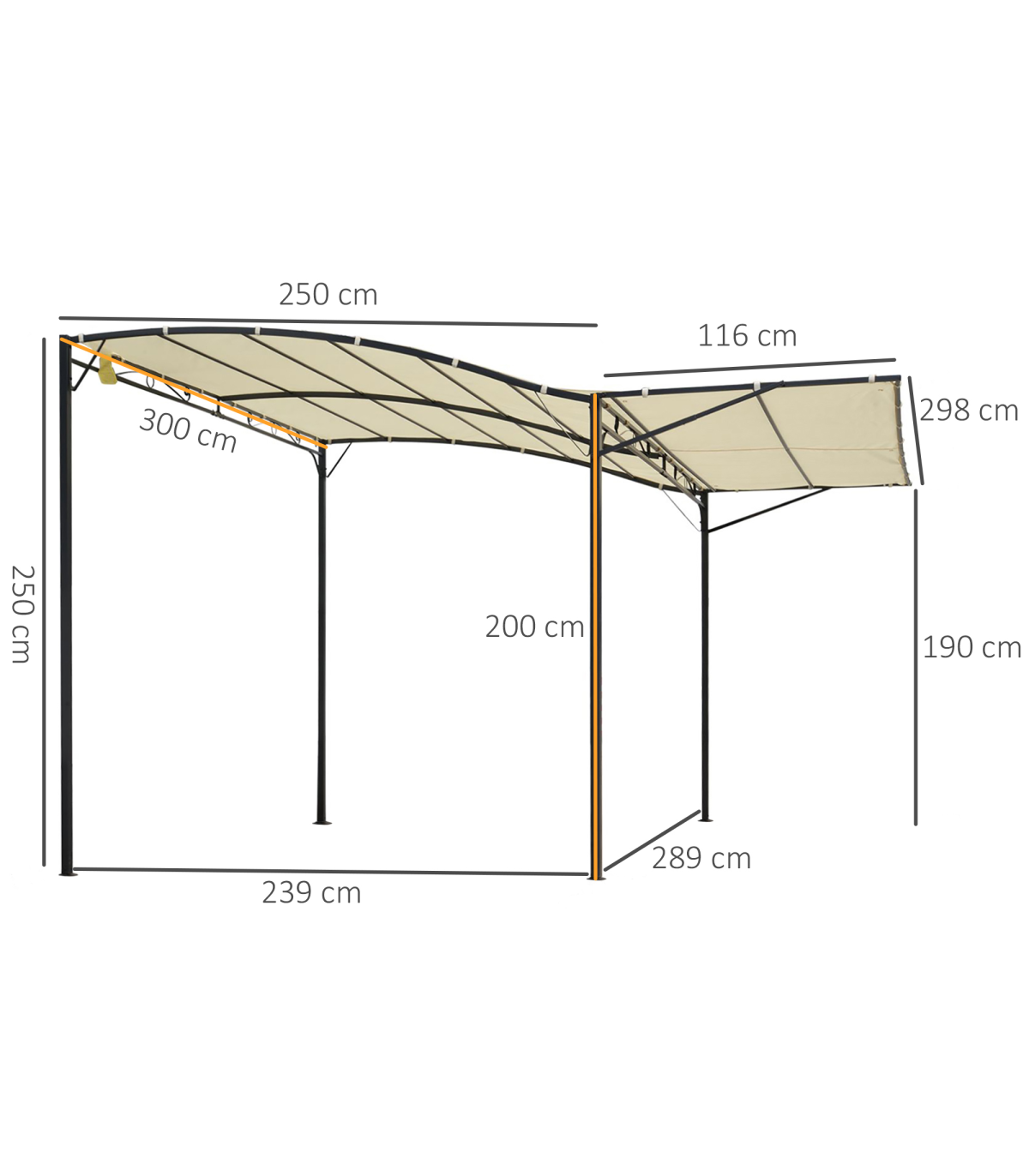 Outsunny Wall Mounted Garden Gazebo Awning, 300L x 250W x 200-250Hcm