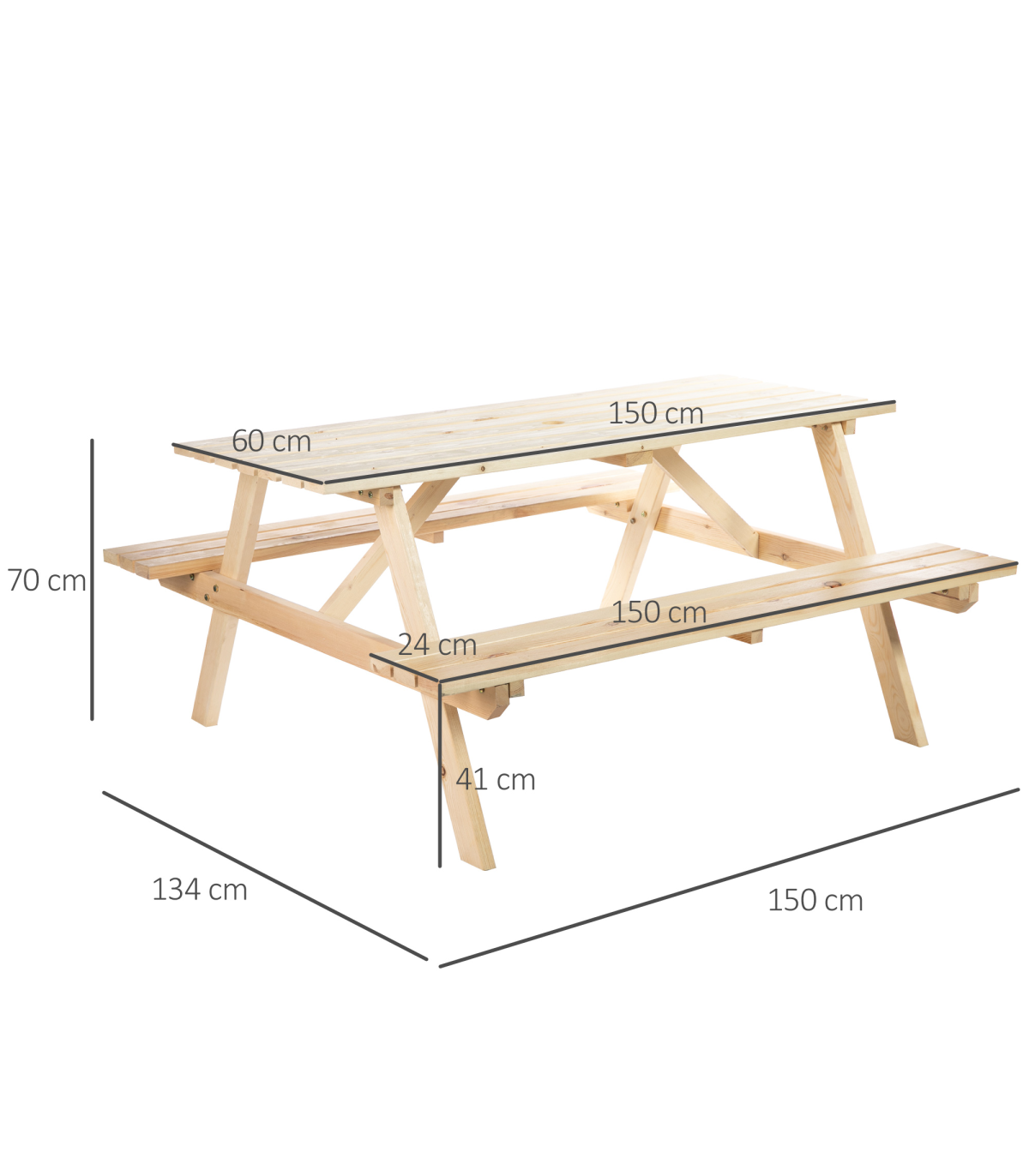 Create the ideal picnic environment to any outdoor space with this wooden table and bench set from Outsunny. Pub, beer garden style design suitable for garden, patio and outdoor spaces accommodating 4 people with ease. Rectangular design to offer more space for food, drinks and accessories. Produced from Fir wood to offer added strength and stability. Hand finished to ensure smooth edges and no splinters.