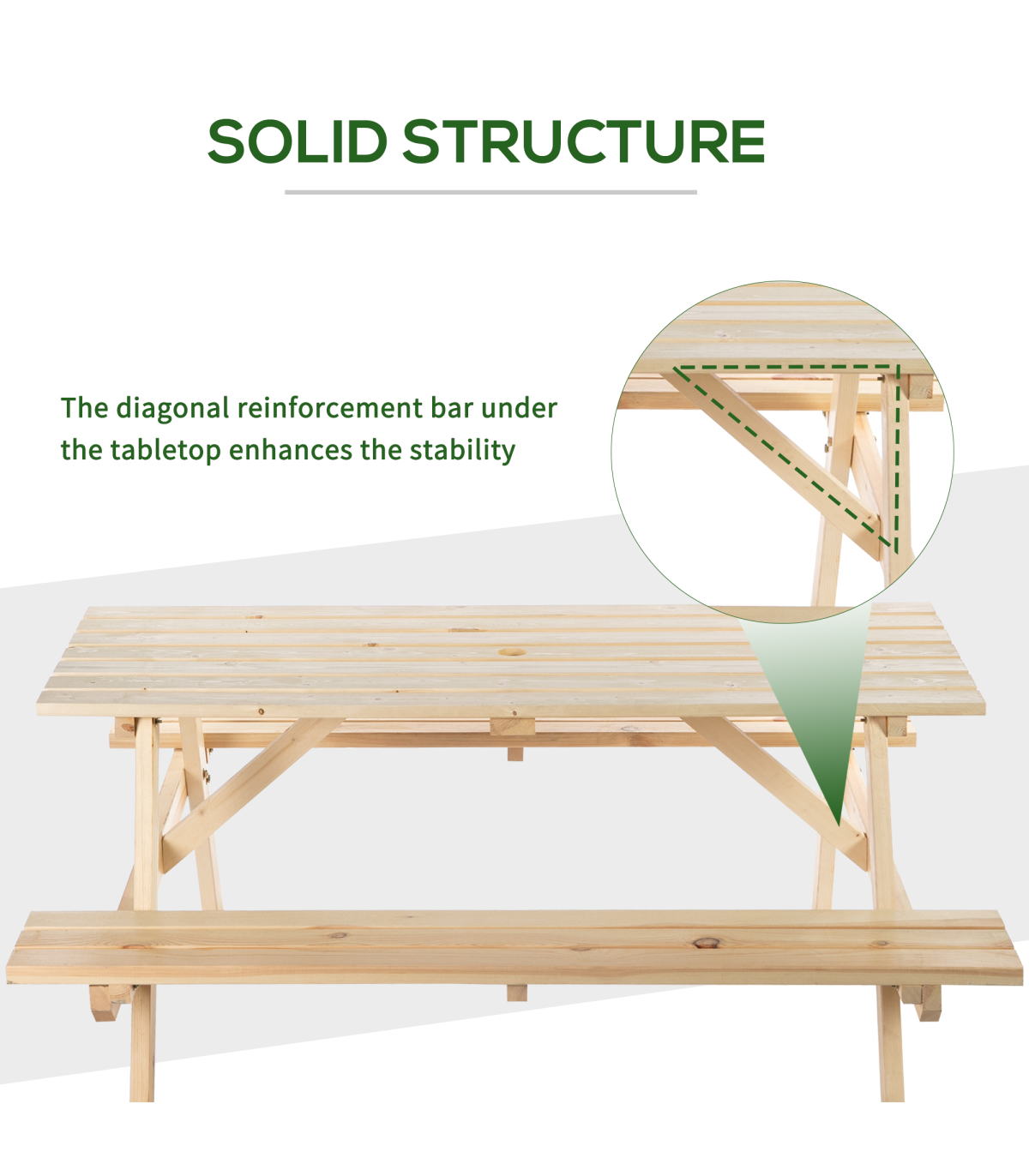 Outsunny 4-Seater Wooden Picnic Set-Fir Wood